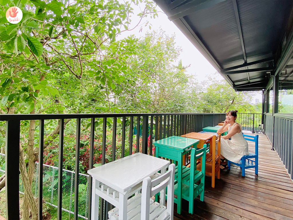 小陽台區是彩色課桌椅風,小情侶約會或午後成為小孩的秘密基地