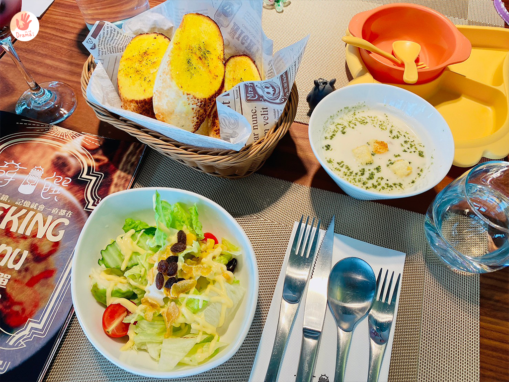 餐點都是升級套餐的,有濃湯/法式手工麵包/沙拉,都蠻好吃的,小鳥胃的我們光吃前菜就快飽了