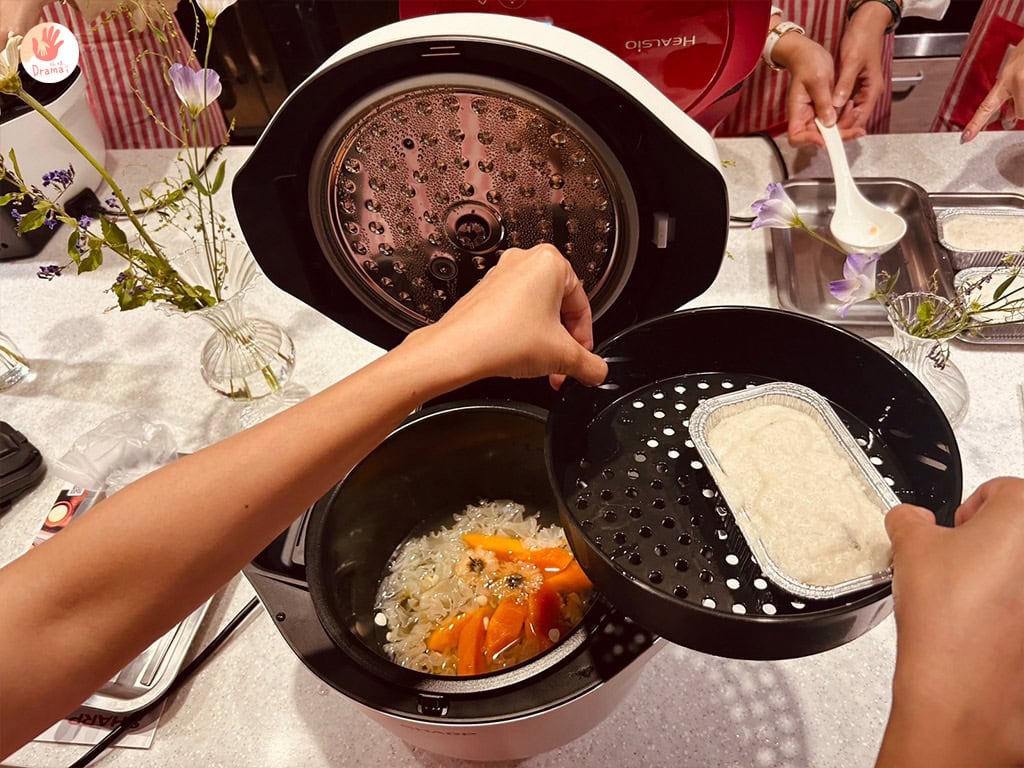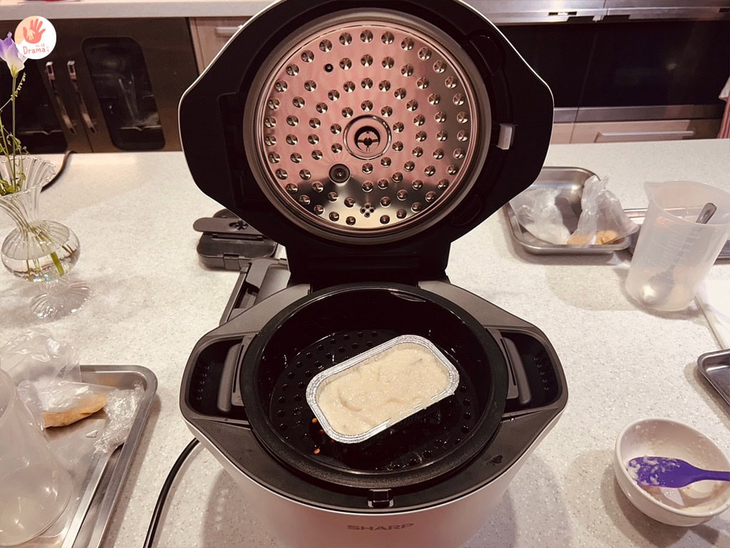 接下來,將[夏普SHARP智慧攪拌零水鍋]的蒸盤放入,將鋁箔盒
