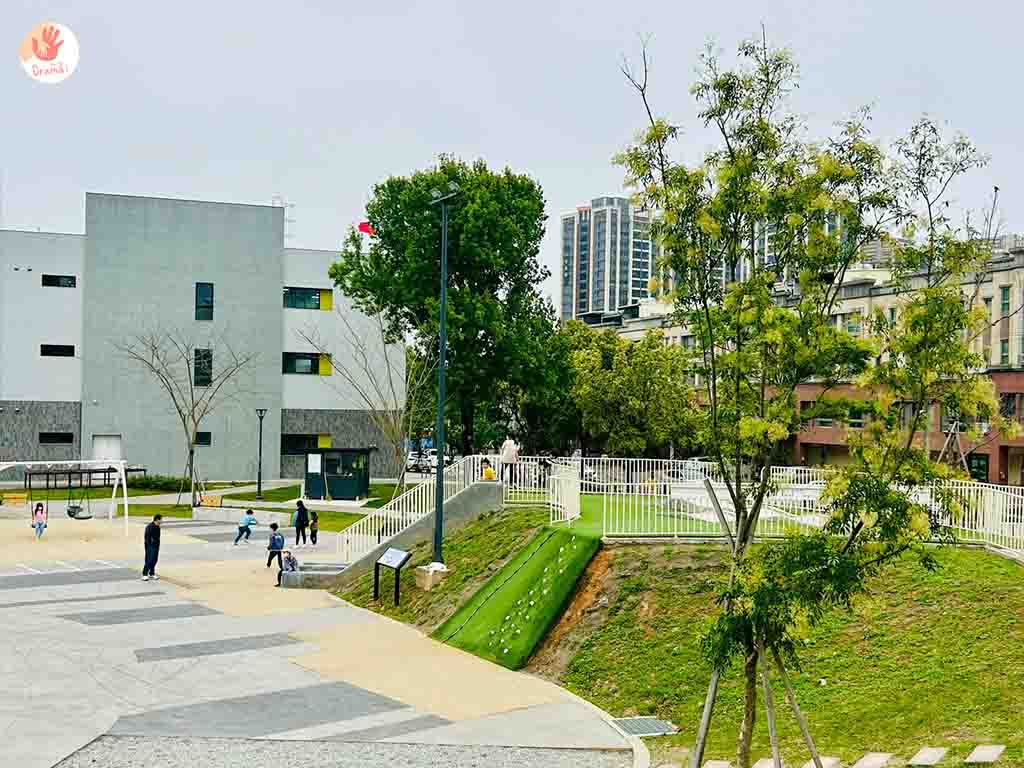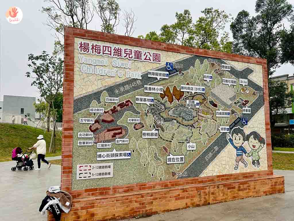 [楊梅四維兒童公園]桃園市楊梅區四維二路及號永美路445巷旁,Google map直接搜就能抵達,公園對面設有收費停車場,也有路邊車位可以找
