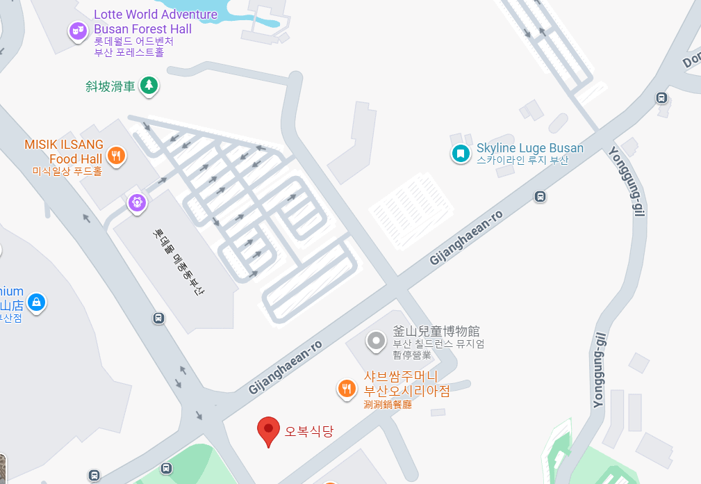 來玩[Skyline Luge斜坡滑車]若是接近用餐時間,推薦可以到步行十分鐘的[오복식당]餐廳吃飯,很適合小孩而且有小菜吃到飽,NAVER Map搜[Peuraimbi오복식당]