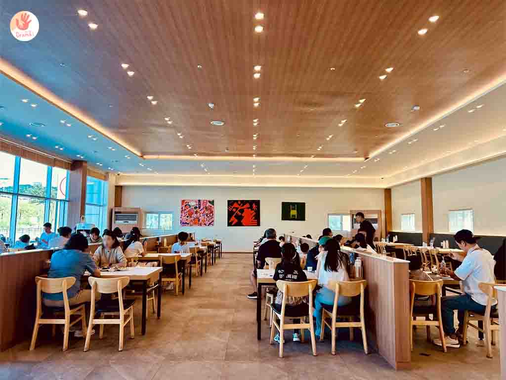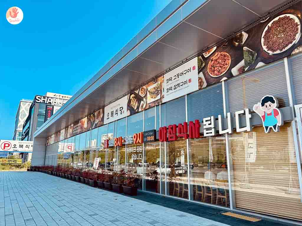 [Peuraimbi오복식당]斜對面就[Lotte Premium Outlets 東釜山店],落地玻璃窗的用餐環境,座位空間很寬敞明亮