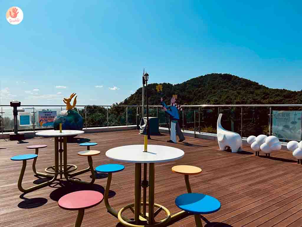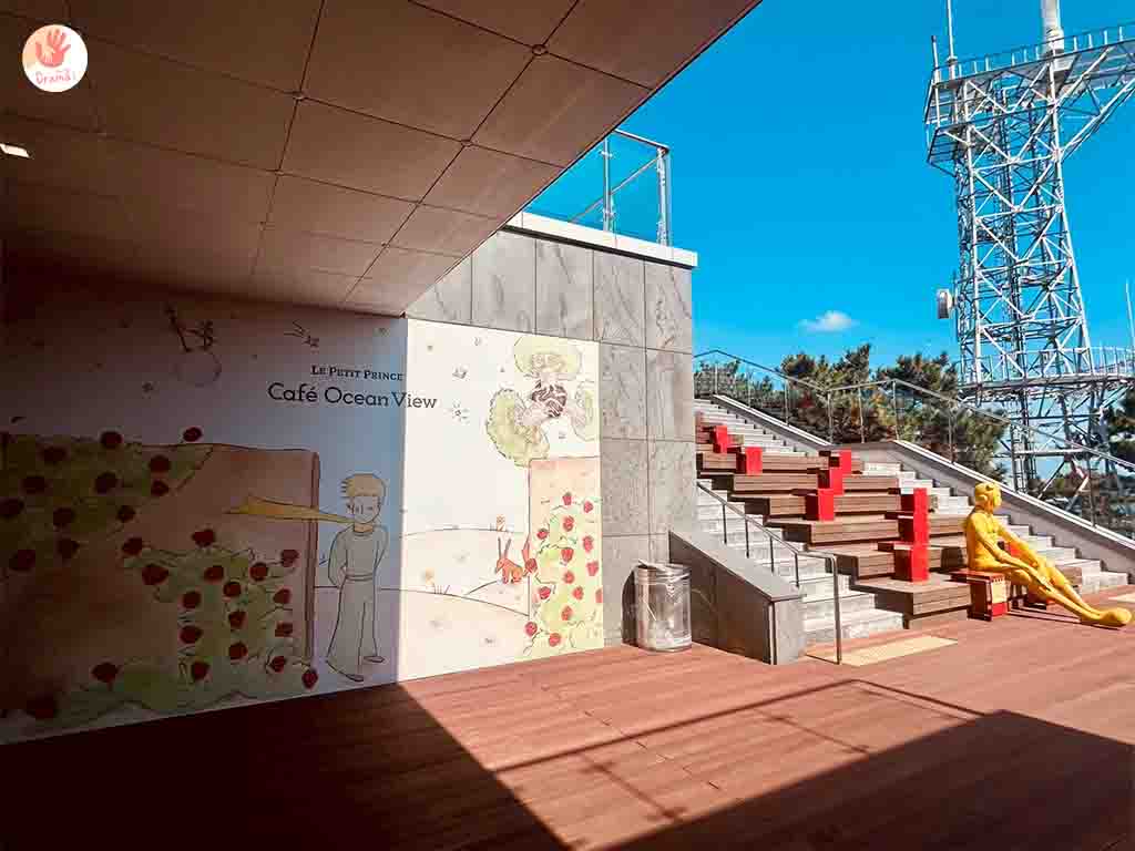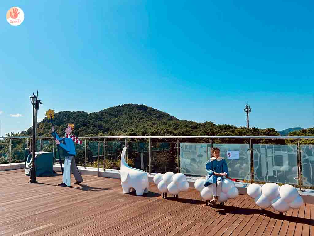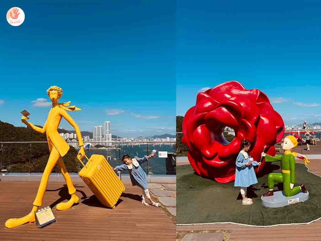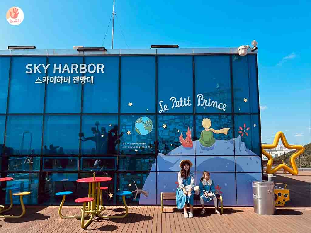 搭乘[釜山松島海上纜車]抵達[松島Sky Park站]這裡也有小吃商店街和台灣小攤很像,[松島Sky Park站]二樓有咖啡廳,三樓就是小王子主題廣場
