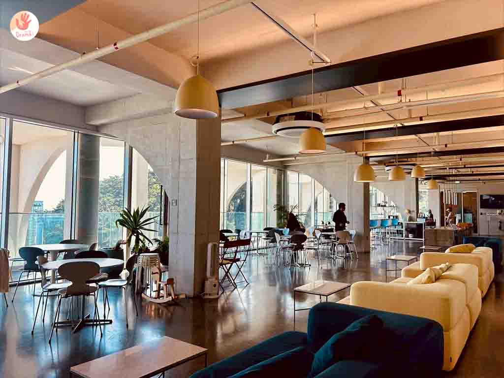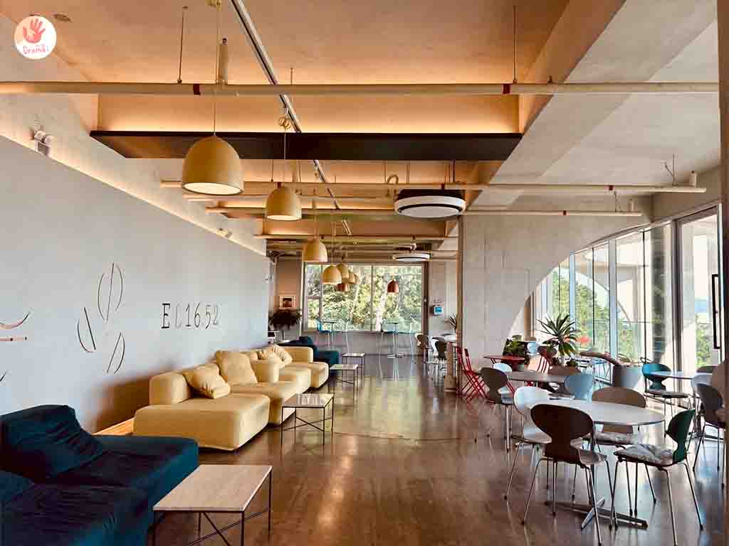 [EL16.52海景咖啡廳]有室內和戶外的座位,二樓和三樓座位有沙發座位和小圓桌,戶外有向陽座位可以發呆觀景
