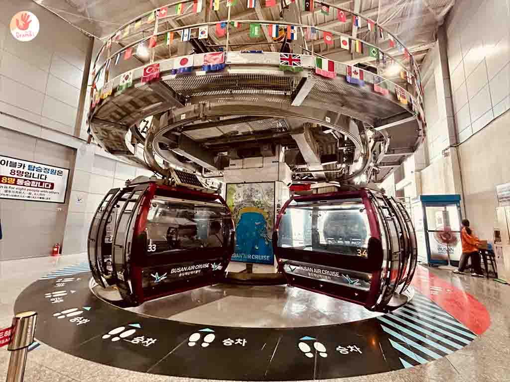 [釜山松島海上纜車]的乘坐起點是松島灣站(Songdo Bay Station),單趟大概15-20分鐘上下,搭到對岸的松島Sky Park站(Songdo Sky Park Station)下車,車廂類型分為普通車廂、水晶透明車廂。