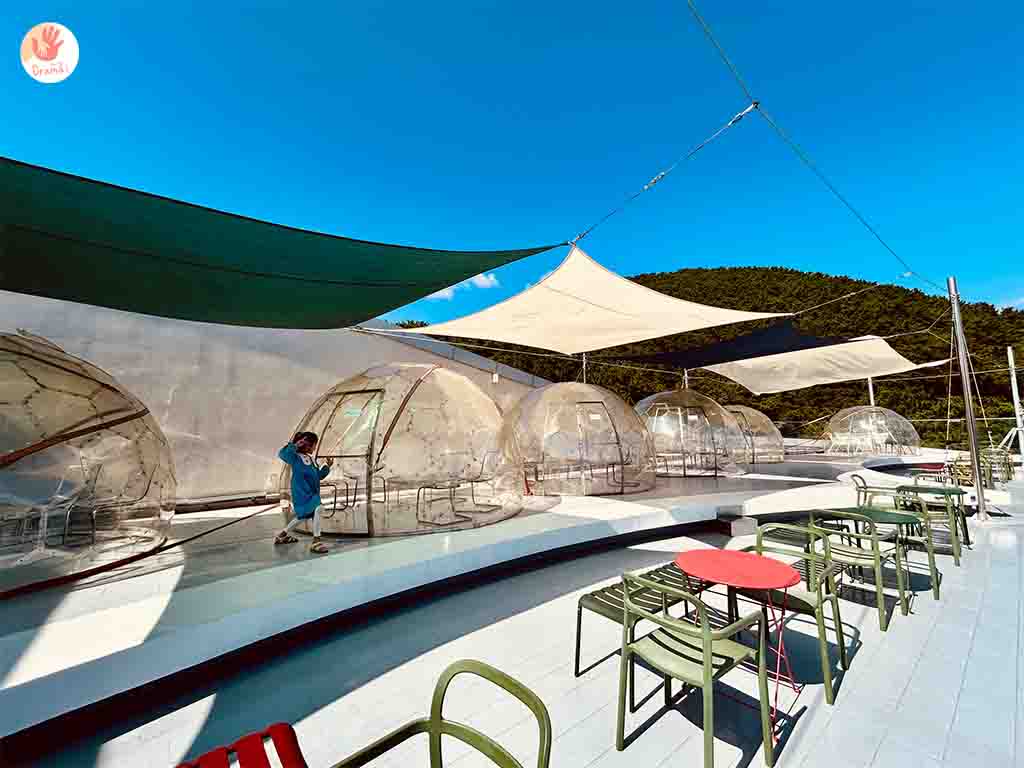 我們選擇一早來搭[釜山松島海上纜車],建議搭至松島Sky Park站(Songdo Sky Park Station),除了慢步公園走天空景觀步道和小王子廣場外,也可以走到山坡的咖啡廳[EL16.52海景咖啡廳]絕美視角看纜車吹海風,而且這裡的麵包非常好吃,我們就選擇當午餐超級chill。