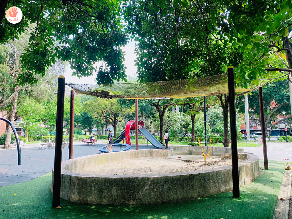沙池區是有棚的規劃蠻貼心,只是社區型的沙池我們都不敢玩,因為很容易會挖到大便