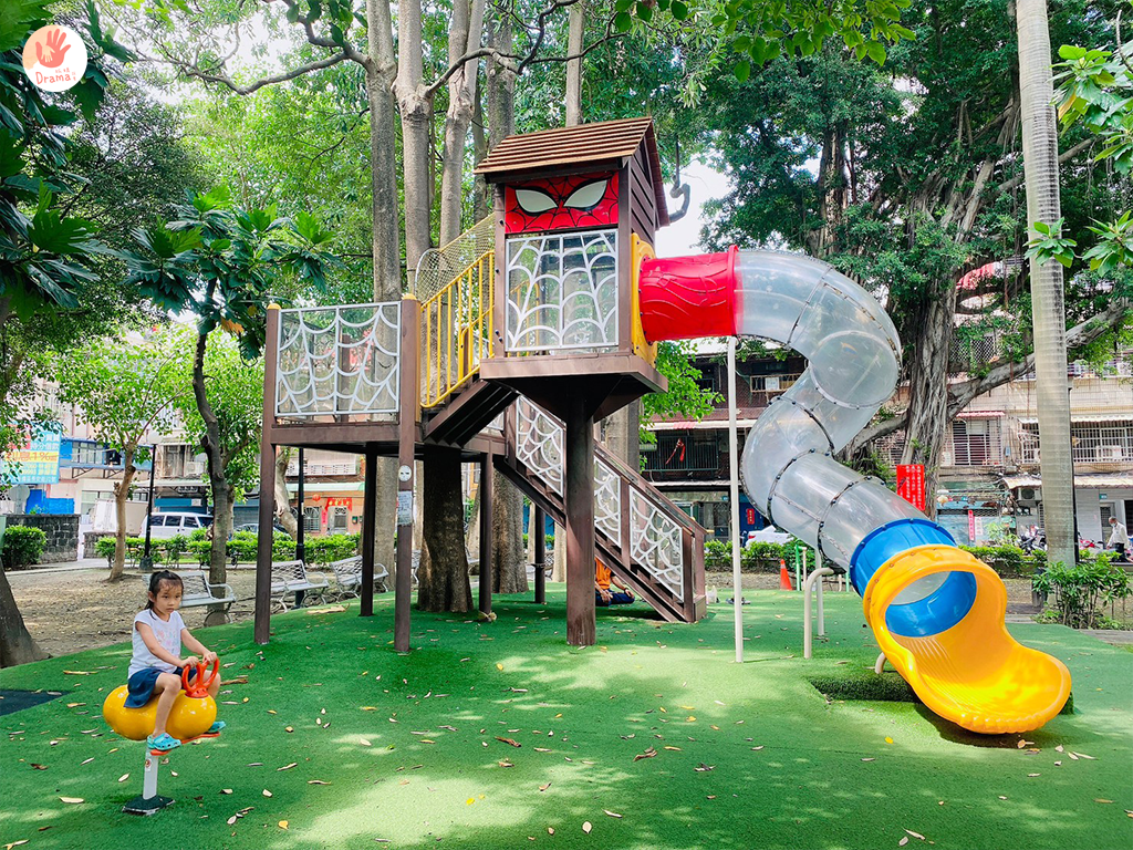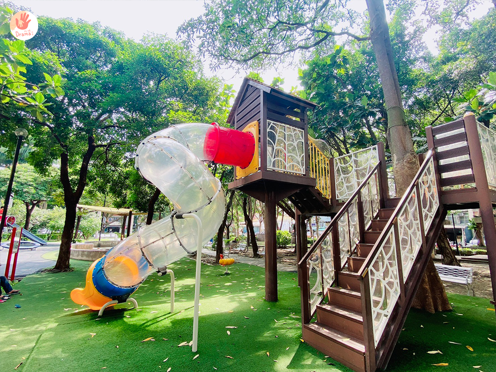 蜘蛛人樹屋結合透明水管的溜滑梯在樹意微森林裡,還蠻可愛的