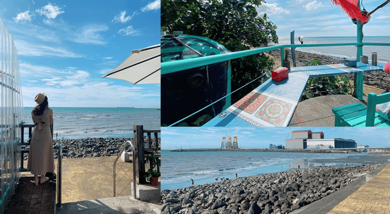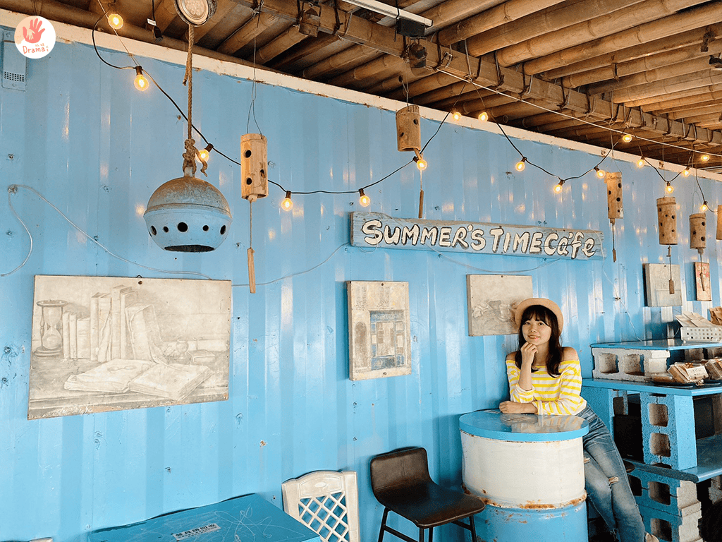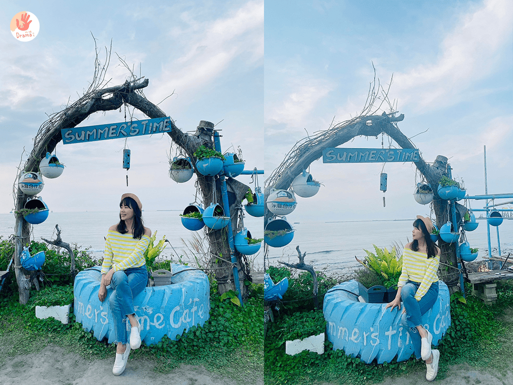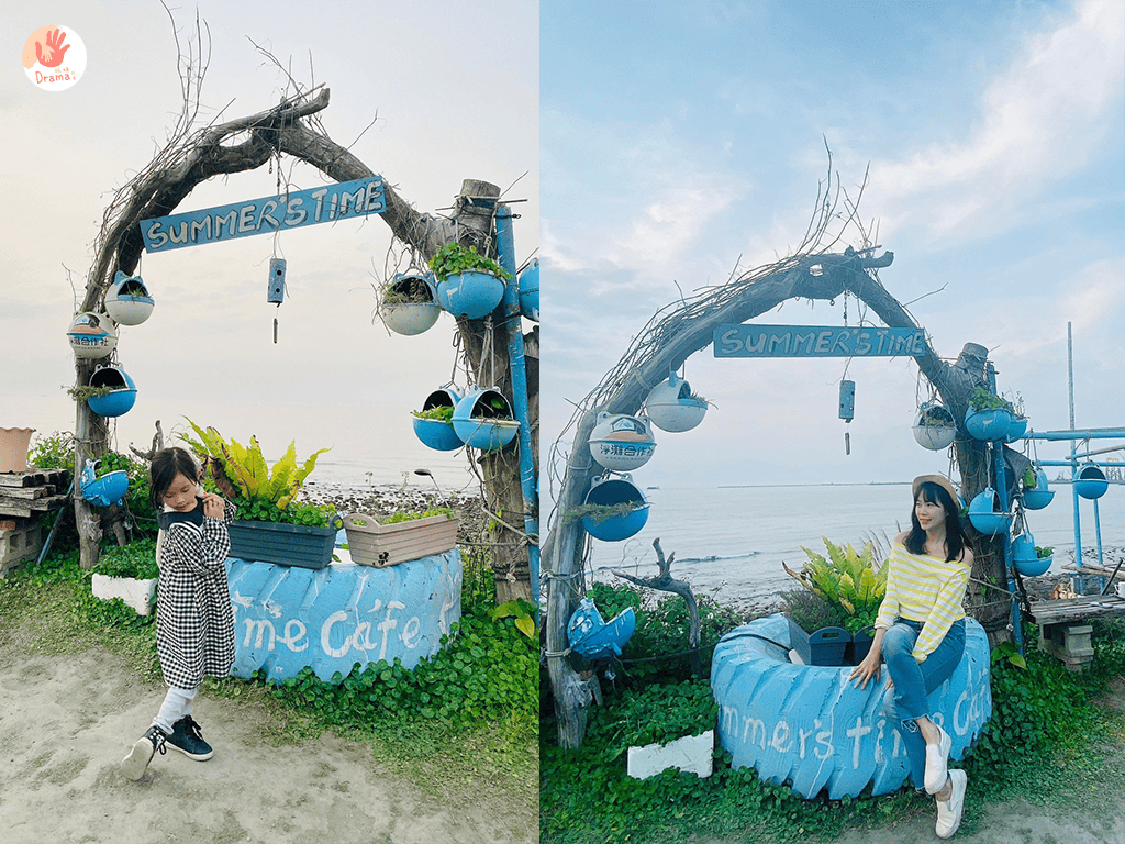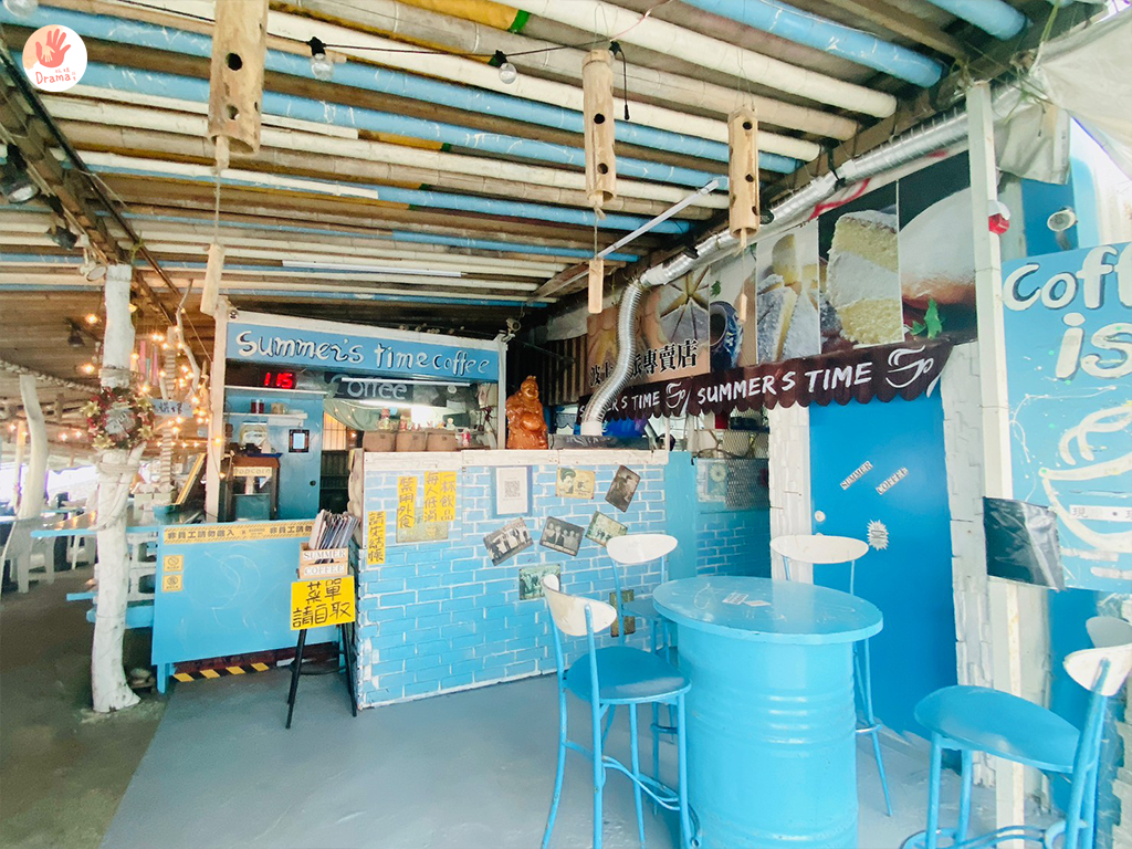 林口濱海公路這一段我們之前去過[6115cafe]沒有低消一杯飲料最便宜是50元,視野也很棒還可以去踩踩沙,這次來到[行動咖啡summers time]這裡的佈置氣氛比[6115cafe]好,但必須說來這裡真的不要點吃的,點飲料就好。