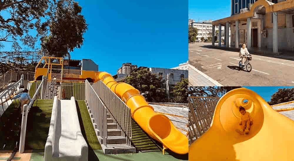 [大新店游泳池]有多種滑水道設施,CP值很高!鄰近步行5分鐘還有[親情河濱公園]可以搭配放電一起玩~~