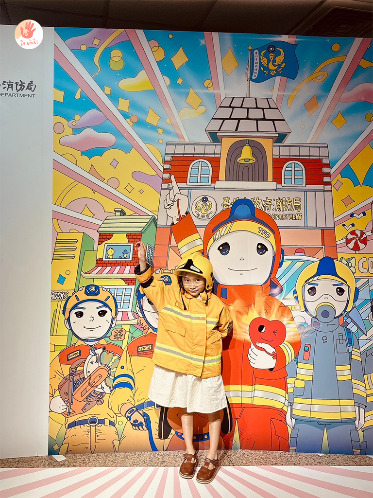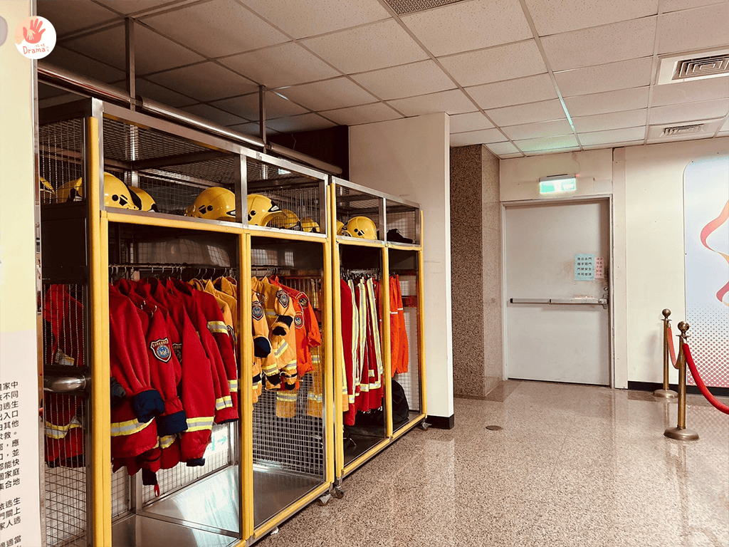 最後就是再回到一樓大廳要變裝消防員,為什麼不穿著玩呢,因為小小消防員的衣服設計也來認真的,一穿上去就超厚超暖,整個爆熱
