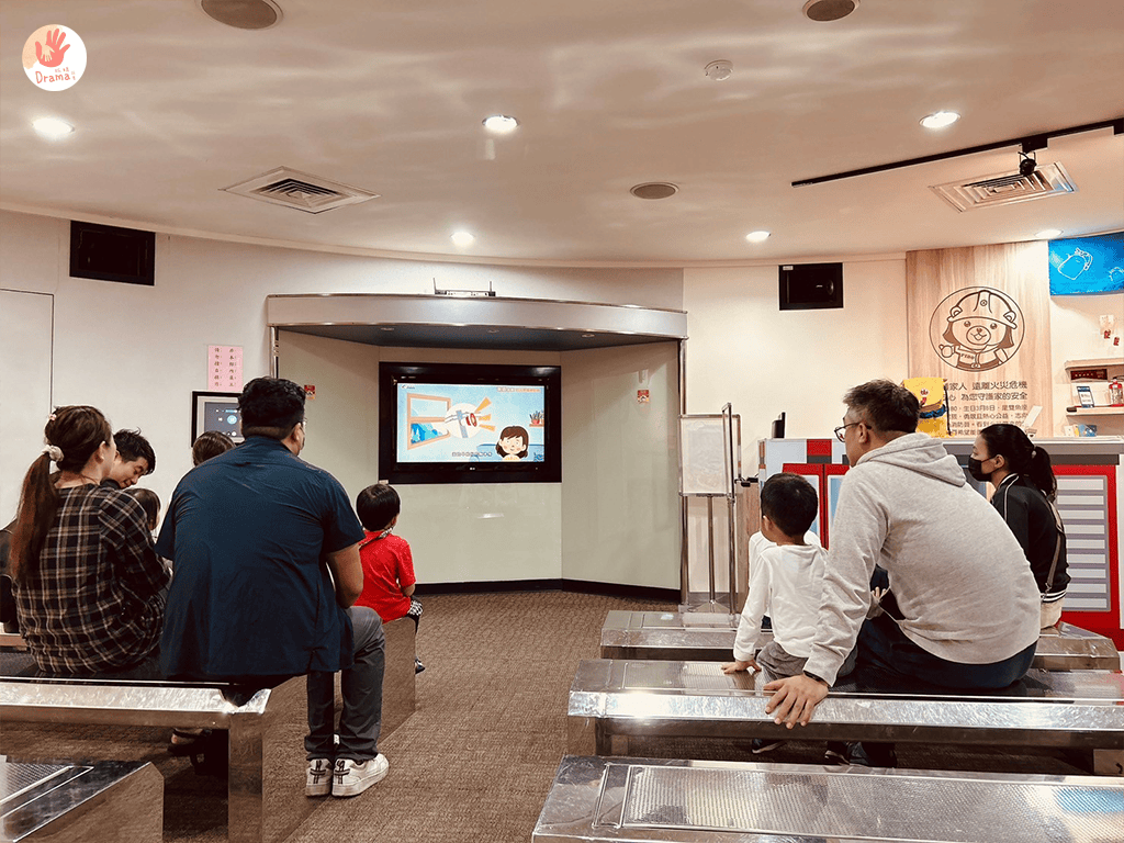 在前往二樓及三樓體驗前,會在這裡先有防災宣導的影片