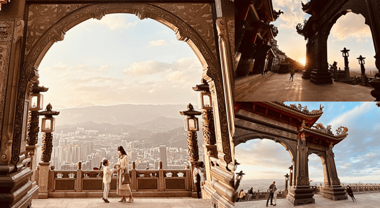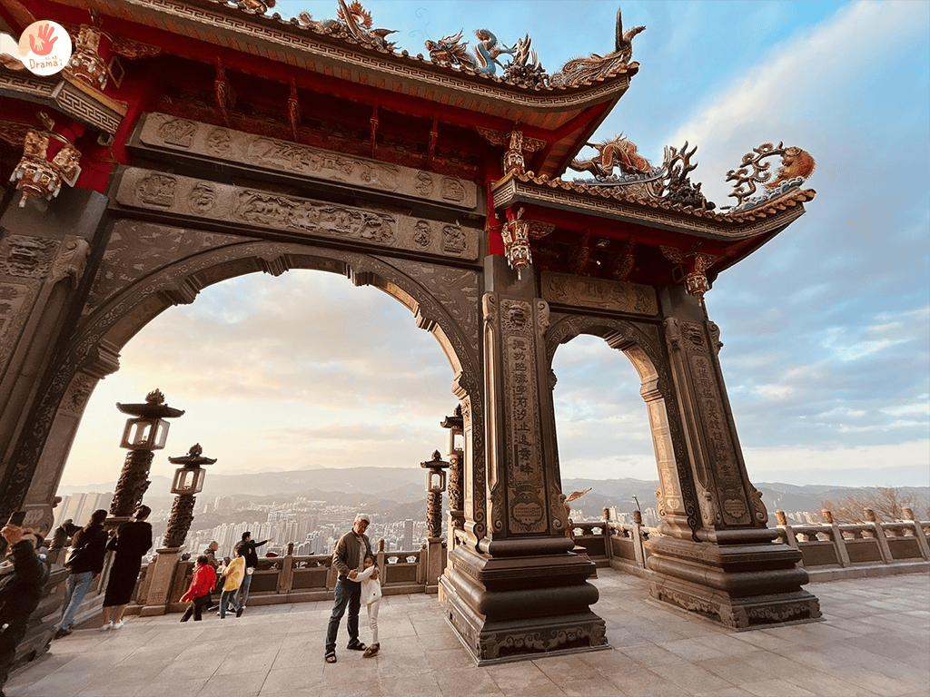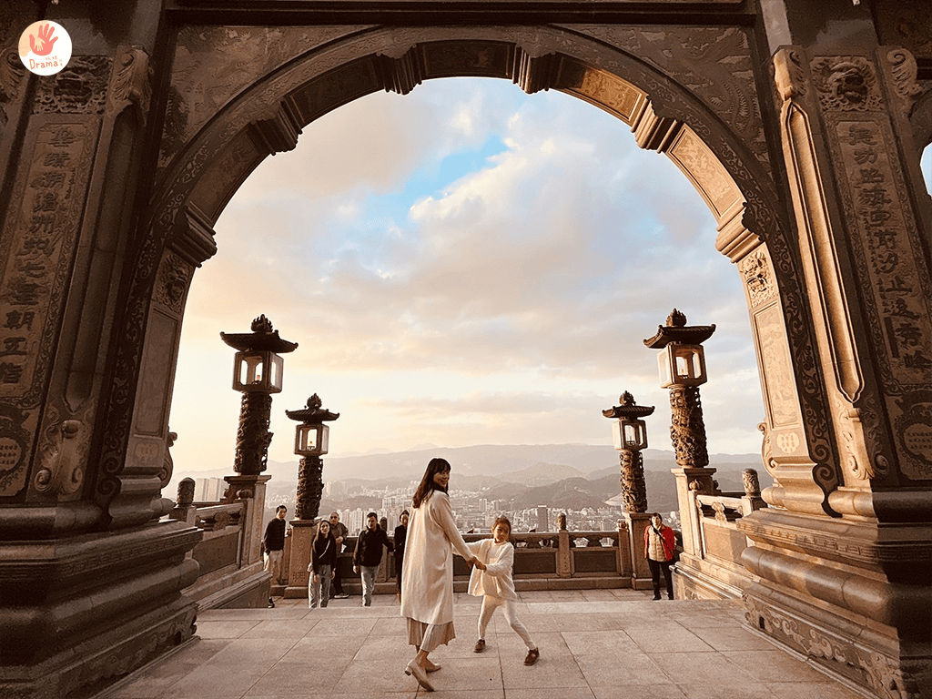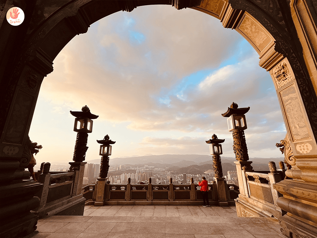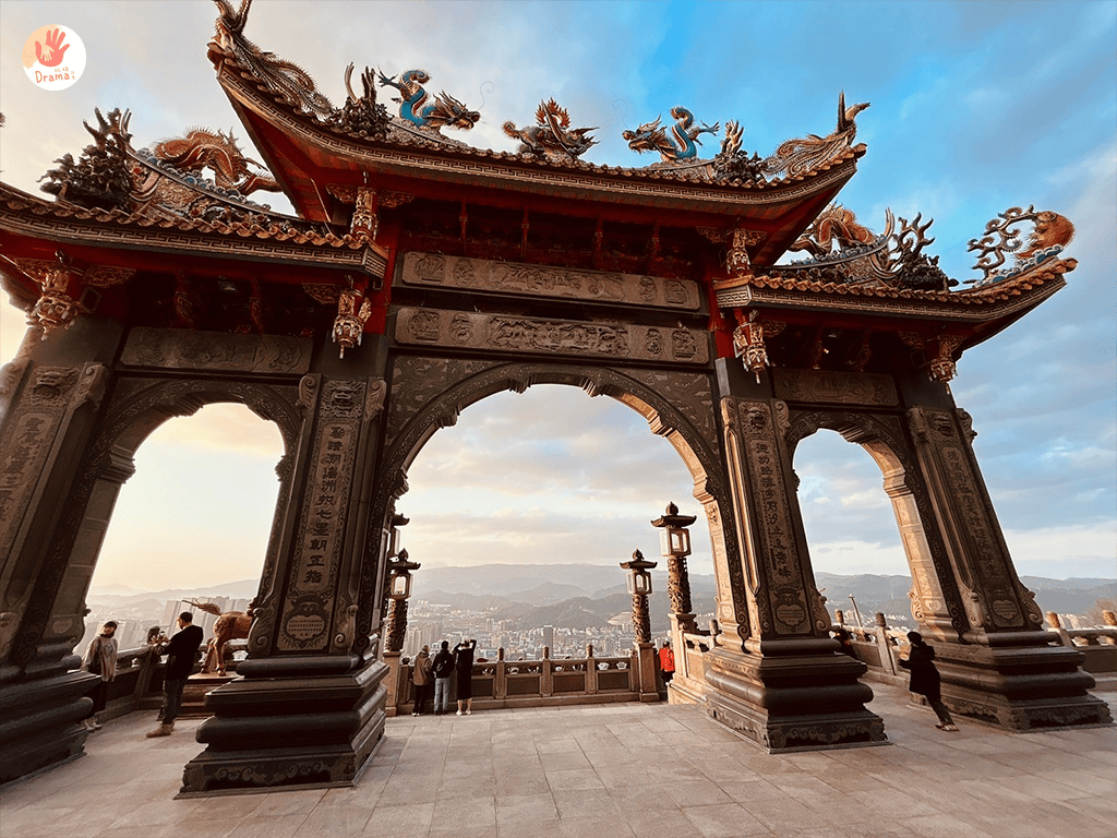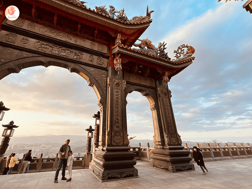 [汐止聖德宮]可以遠眺大尖山結合廟宇的弧形拱門,拍出絕美視角成為IG人氣拍照打卡秘境,來這裡免爬山觀夕陽,身心靈都淨化了。