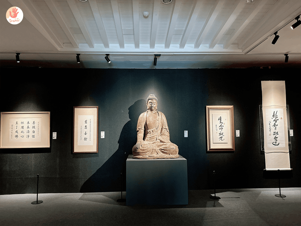 這次書法展出外,也有一區是展出藏傳佛教—轉經輪,順時針轉著經輪會唸著六字大明咒“嗡、嘛、呢、叭、咪、吽”是一種祈福