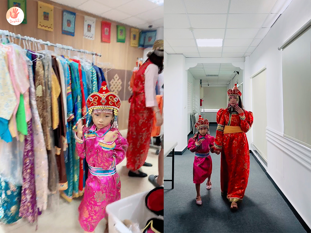我和女鵝換上的是蒙古的服飾,頭飾會結合絢麗奪目,銀鍊、銀鈴、鏨花貼