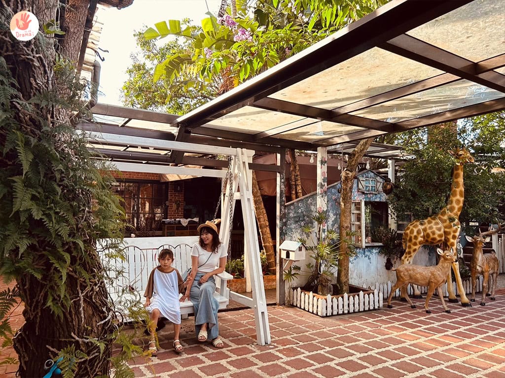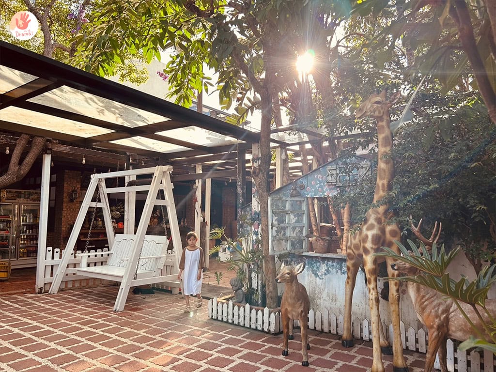 [婉婉庭園小館]戶外有一個休憩搖椅,這裡還有長頸鹿的造景和鄕村歐式小屋感的佈置