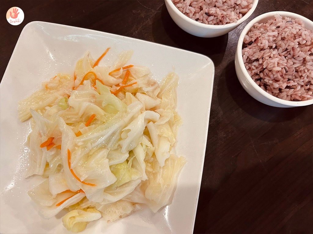 這裡都是紫米飯沒有白飯喲,高麗菜中規中矩,我們因為人不多沒點太多菜,但整體是OK的,就是單價高了點