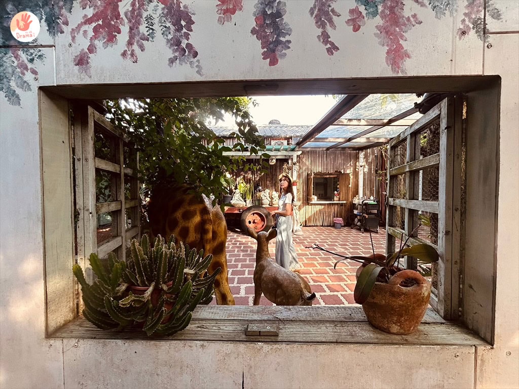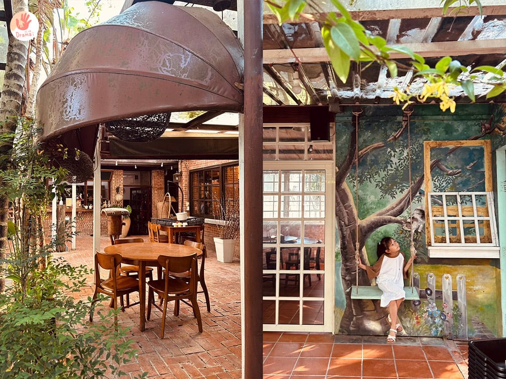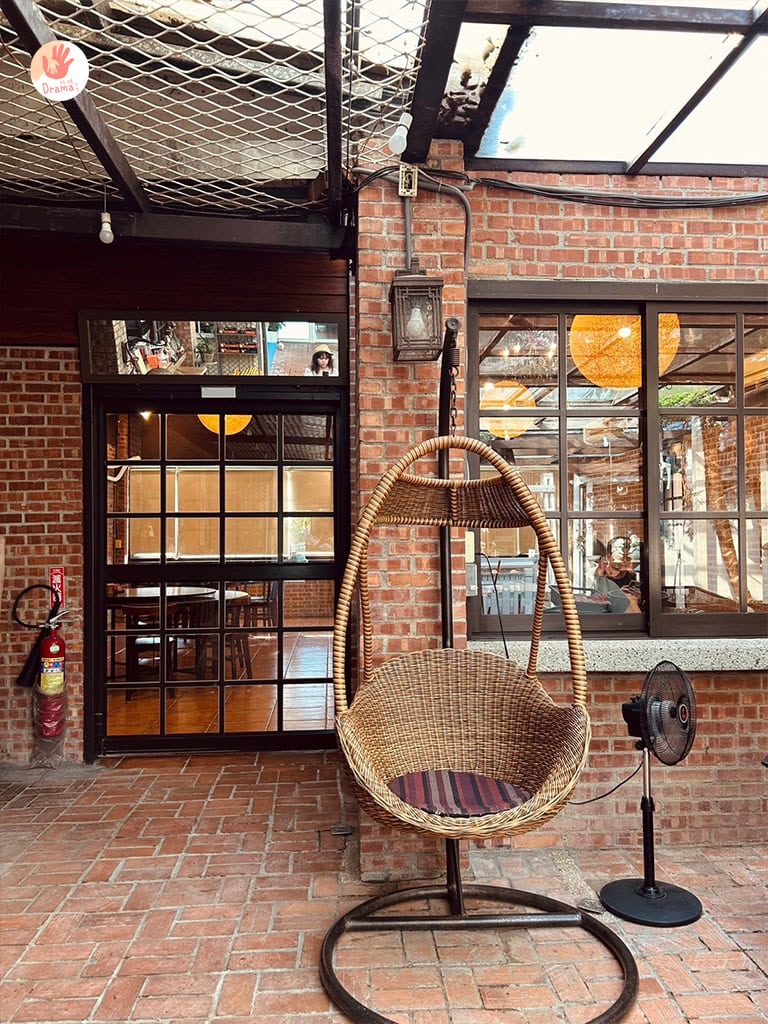 有一面彩繪牆還有立體鞦韆可以供拍照,傍晚時間陽光灑落讓庭園景致變得更迷人了