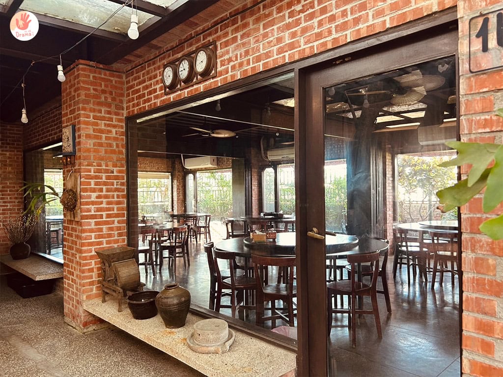 [婉婉庭園小館]紅磚屋也有玻璃窗,面積沒那麼大,傍晚因為太陽太大所以是窗簾是拉下來的