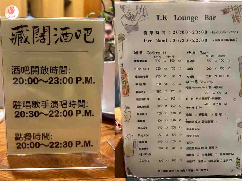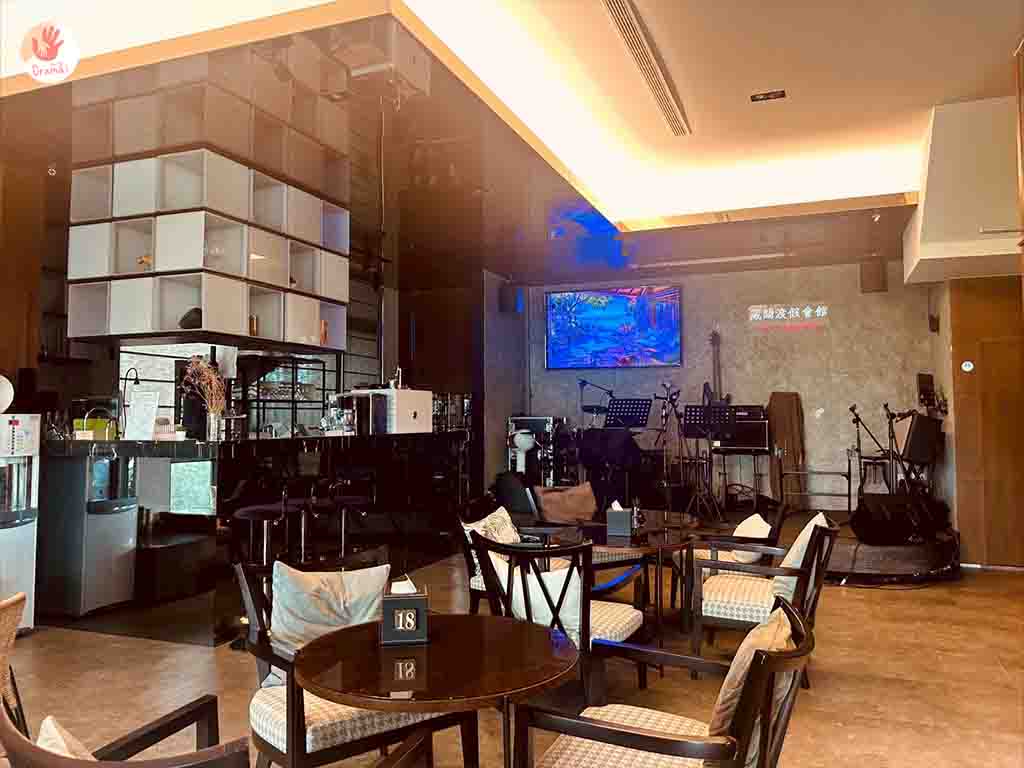 [藏闊渡假會館]酒吧開放時間從晚上8點到11點,假日歌手駐唱時間是晚上8點半到10點,這裡的駐唱除了可以開放點歌,也可以上台唱歌,check in會給100元酒吧折價券