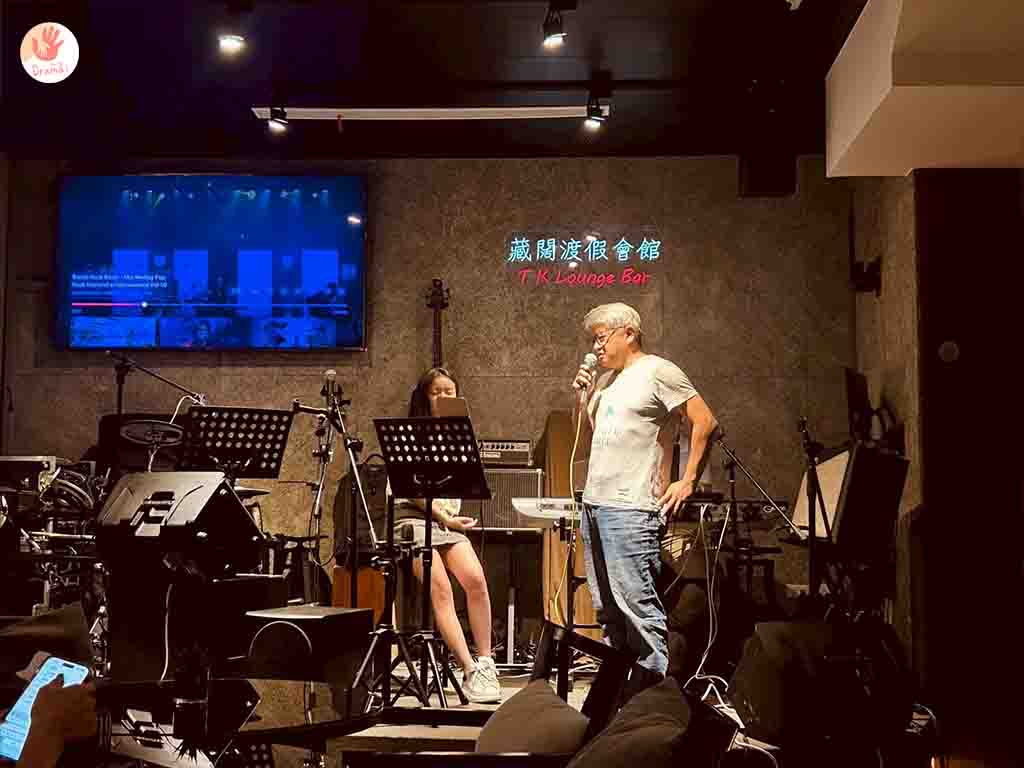 抓爸還點了歌上台高歌了一曲,[藏闊渡假會館]酒吧是沒有低消的,所以晚上可以來純聽音樂不點酒也可以喲