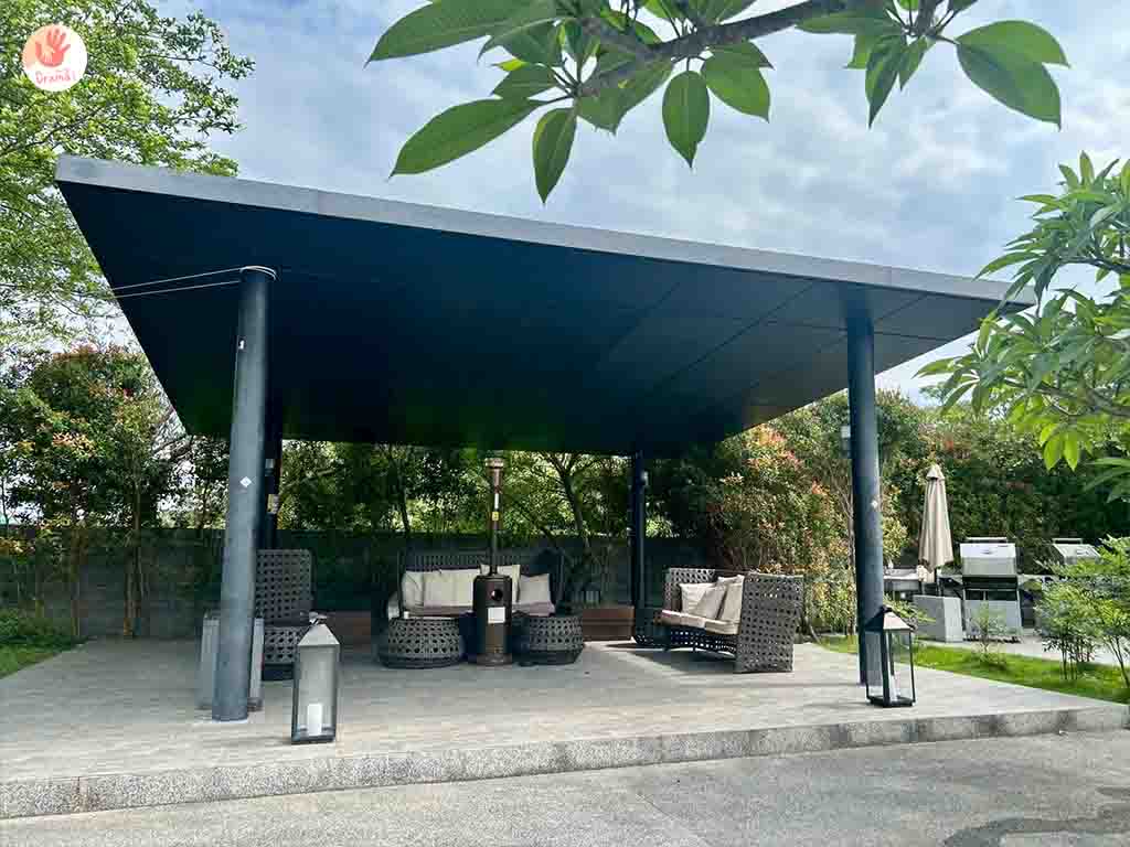 [藏闊渡假會館]泳池峇里島渡假風空間,真的可以放空遛小孩,若是家庭聚會也可以在這裡享用美式烤肉架,需提前預約,無炭火美式烤肉爐(含瓦斯)一個:2000元整。不含清潔費(烤肉爐除外)包含免洗餐具一套,不含食材。詳情可詢問會館