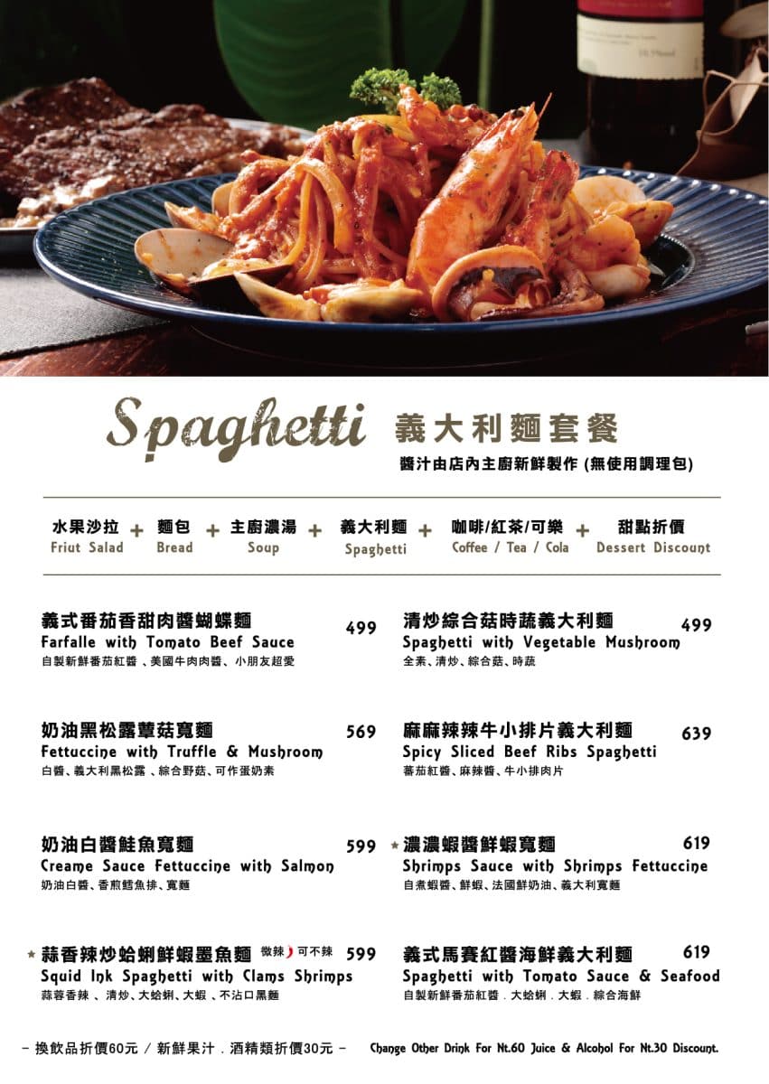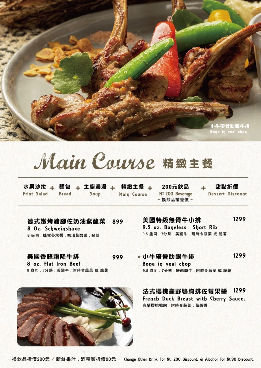 這裡假日低消每人是350元,這裡的餐點不雷,菜單都可以手指zoom in放大看