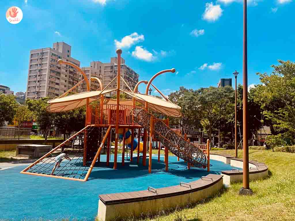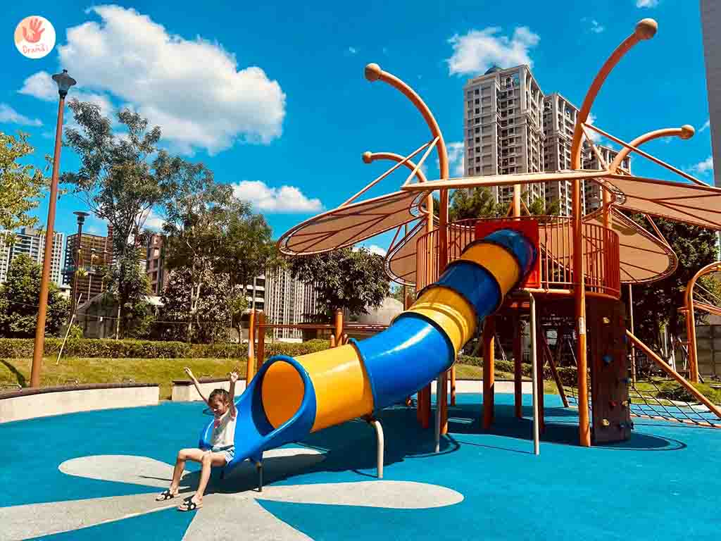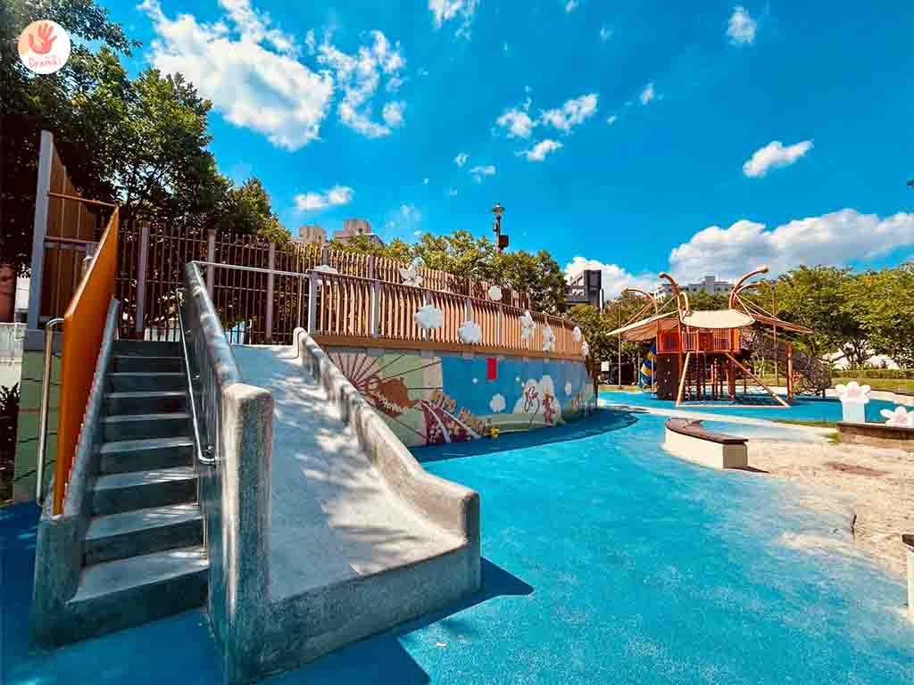 喜歡有點速度感的,[土城員和公園]也有磨石子溜滑梯,滑道不會太長也很適合小幼童來放電,建議搭配鄰近景點美食一起走訪,玩得充實又能吃到美食