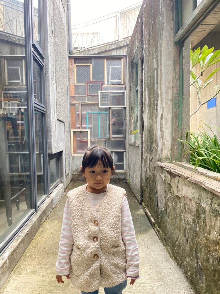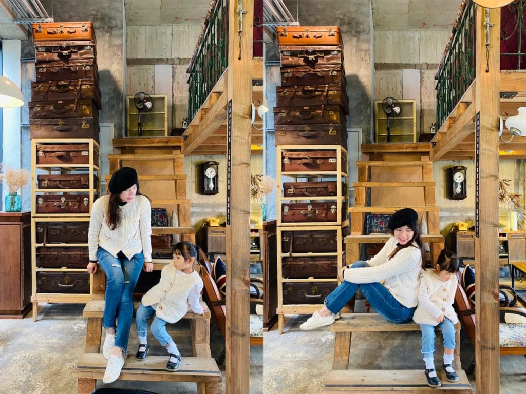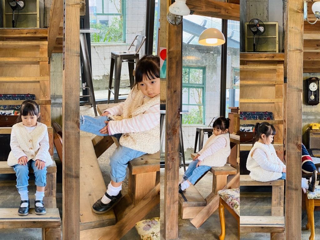 舊事生活動的很有老眷村的FU,外觀看起來是正面,但走到室內會發現外牆是斜的設計,室內的空間也非常有味道,每一角落都值得大拍特拍,平日來幾乎是包場,所以就是任我們母女在裡面大拍藝術照。