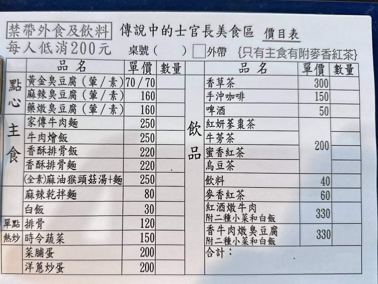傳說中的士官長美食區|菜單