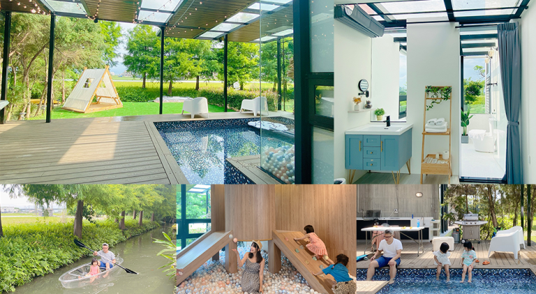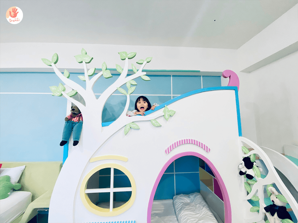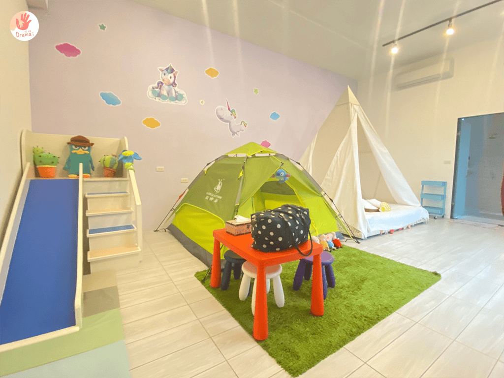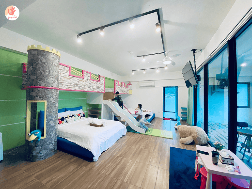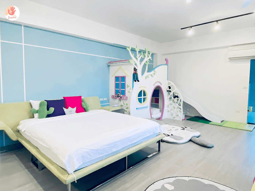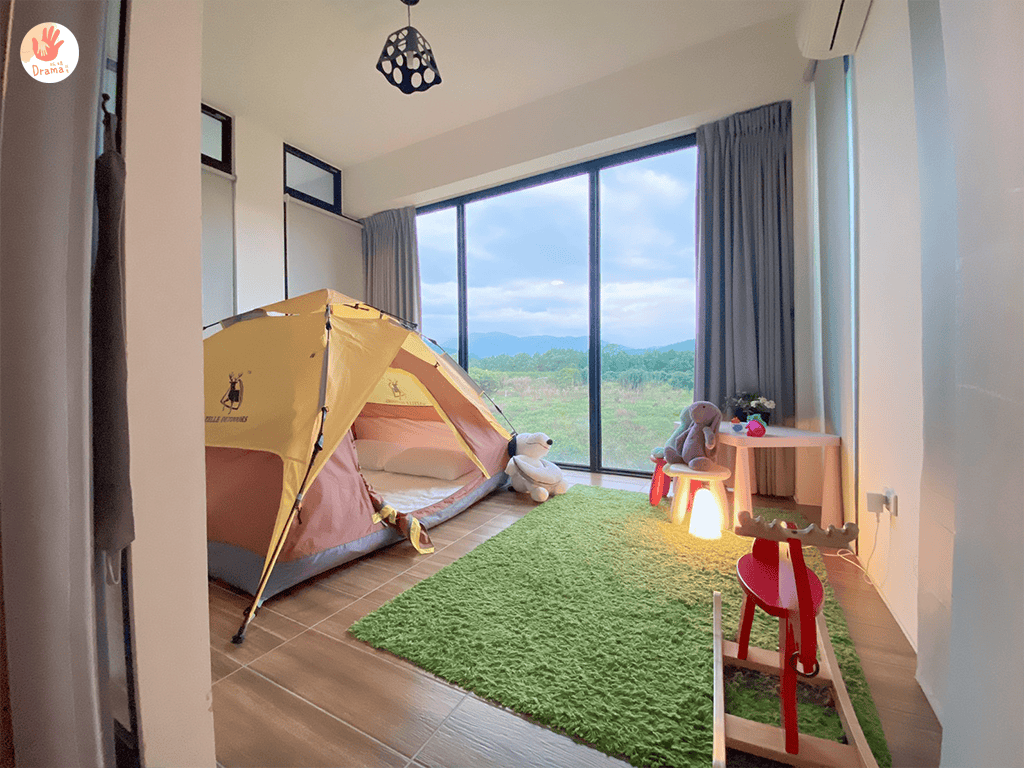 這房型沒有滑梯,但是有一個草皮帳篷,對於沒有露過營的孩子,會很喜歡這房型,整個有自己小天地的感覺