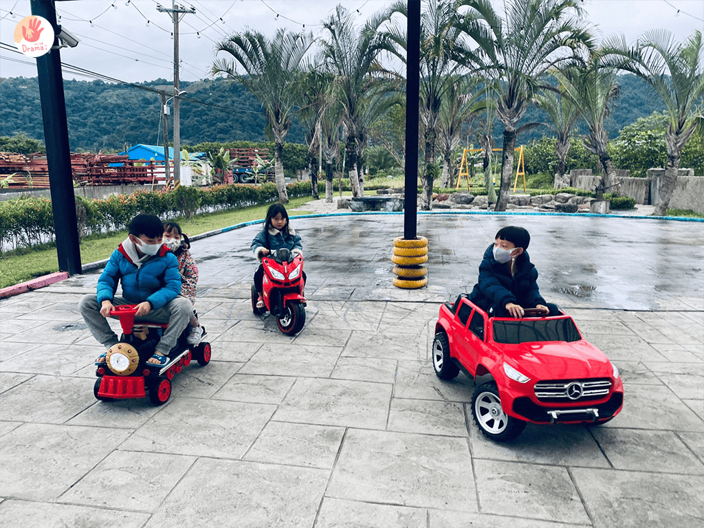 光是戶外電動車,孩子們真的玩不膩,白天玩到晚上,真的很愛各式電動車