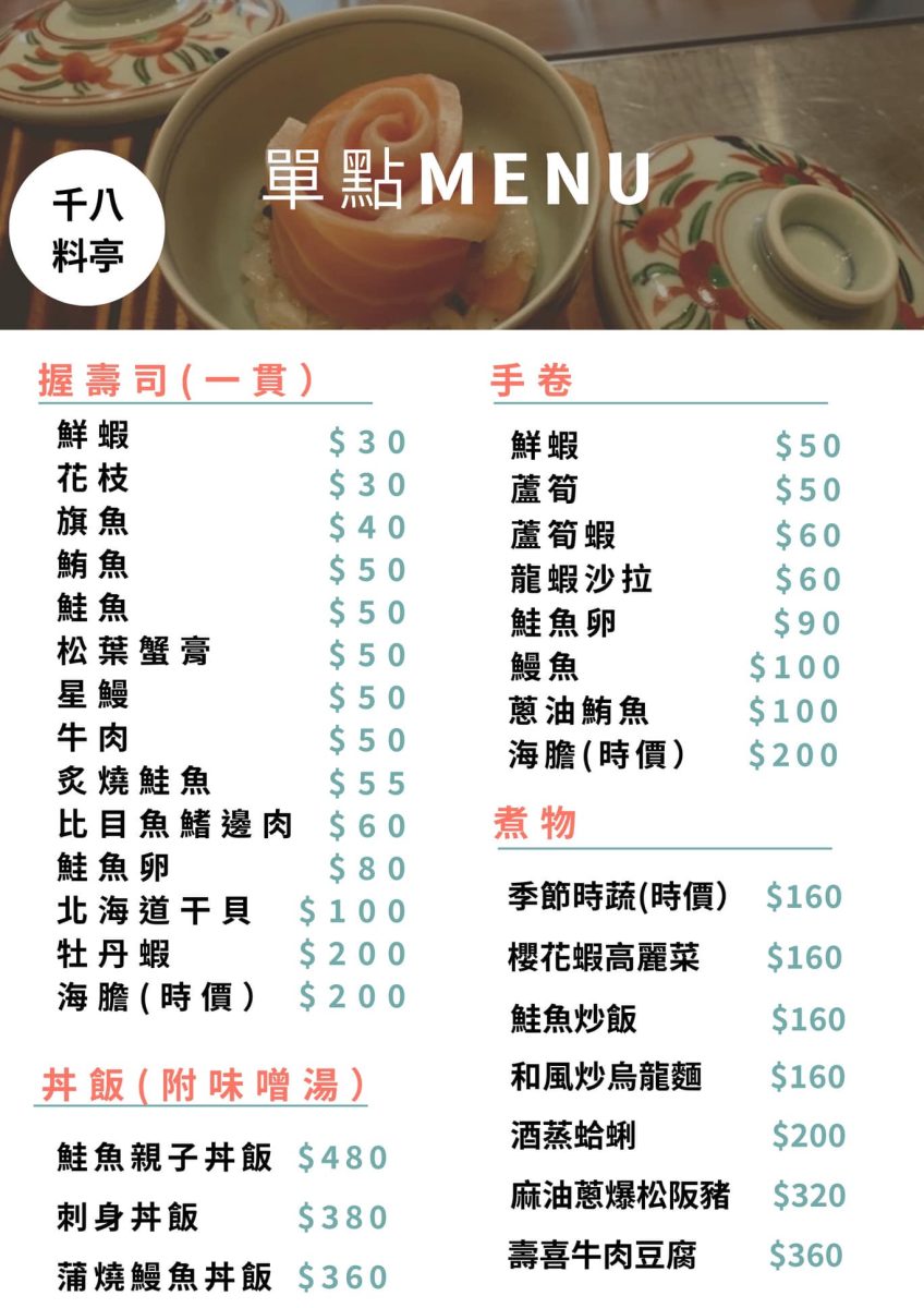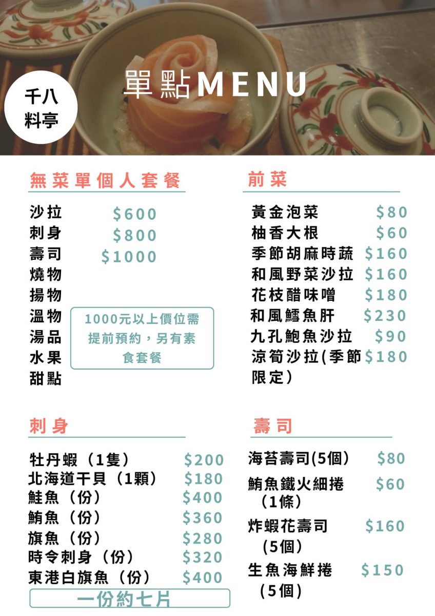 千八料亭日本料理|菜單及上菜囉