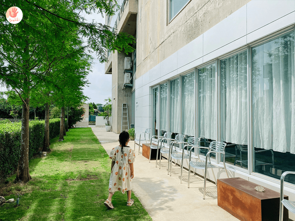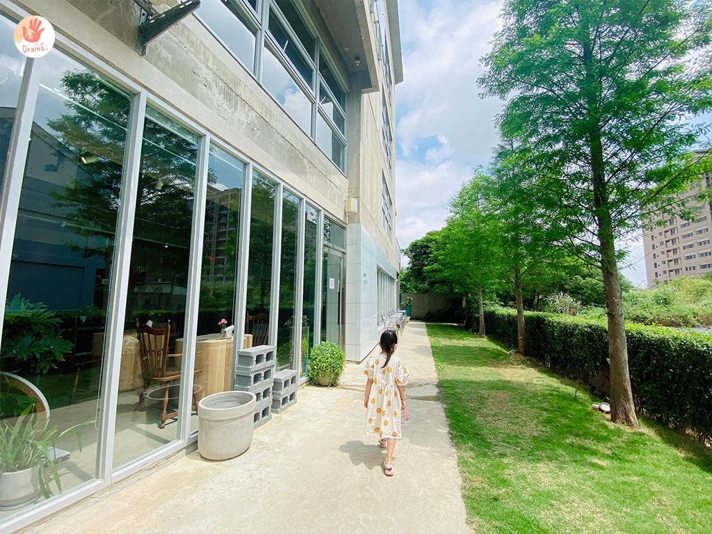 戶外有庭園自行打造了綠意造景,讓全玻璃的建築物添上植物系的美