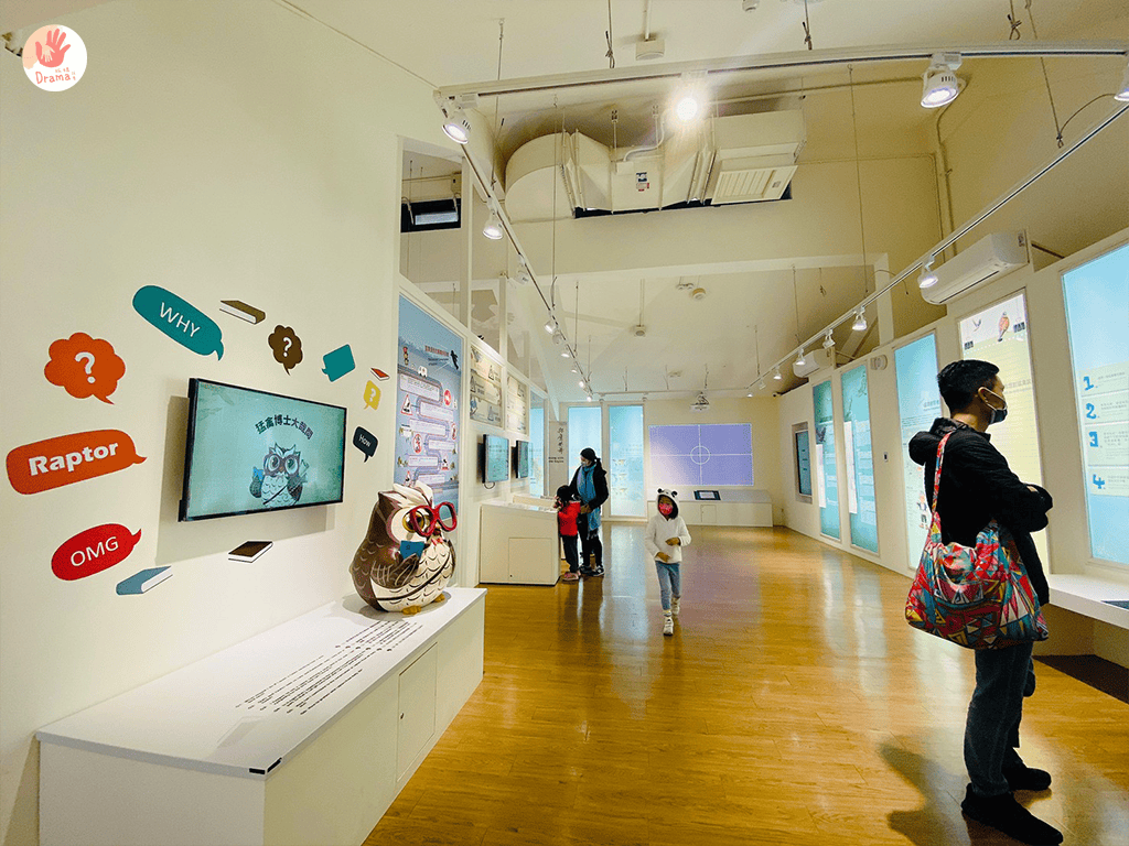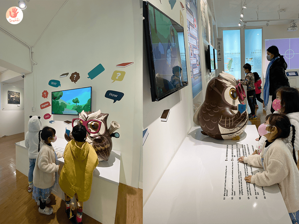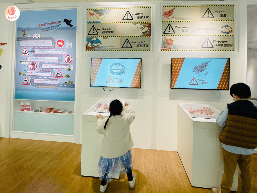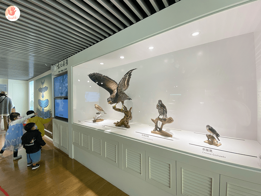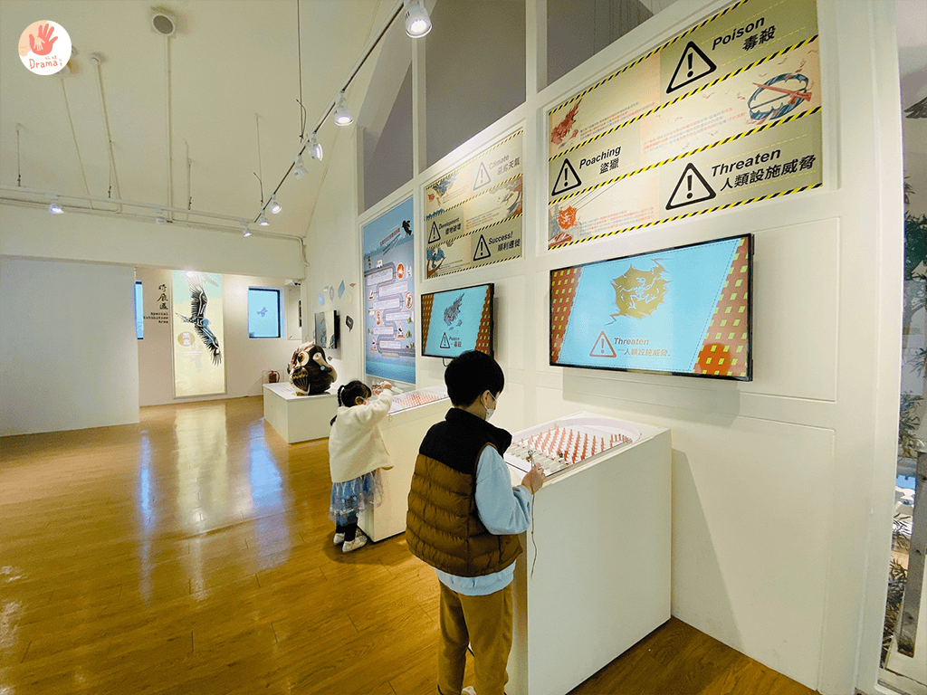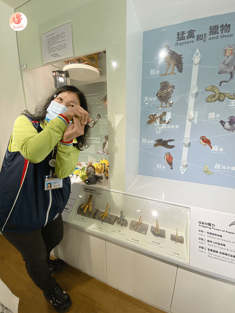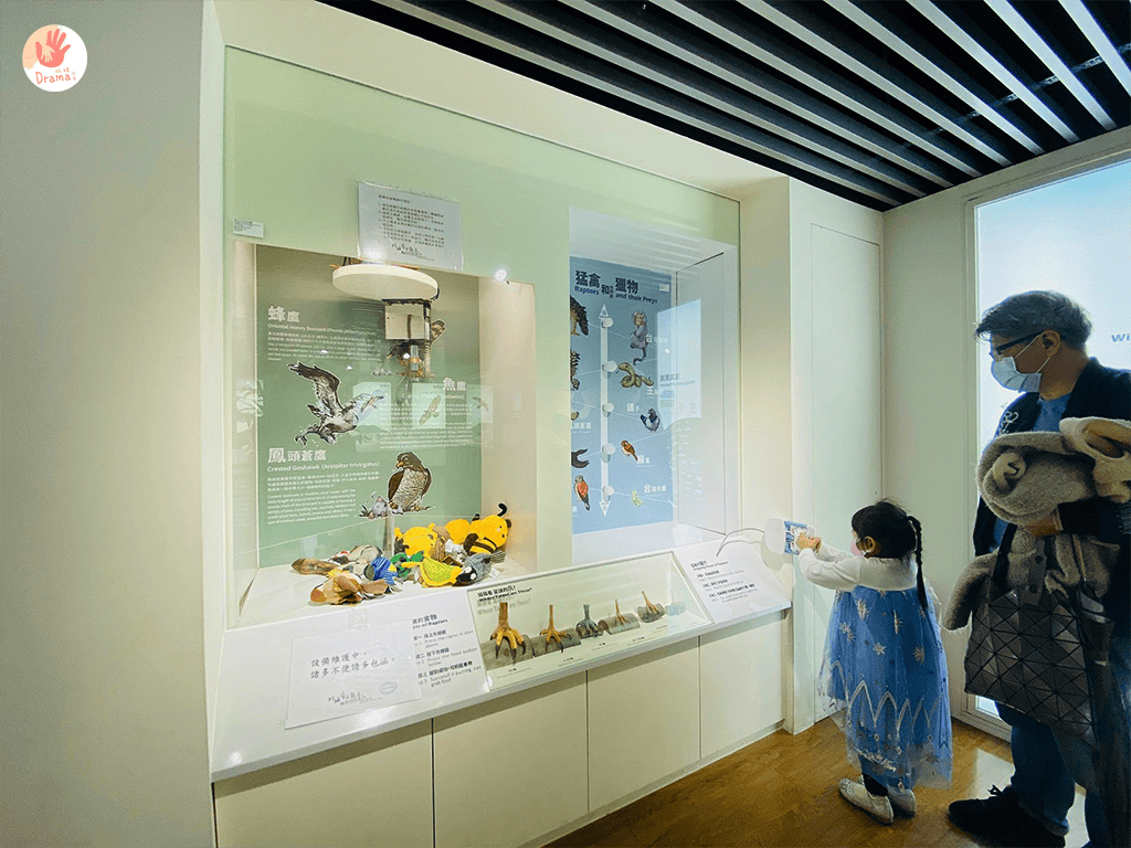 小孩玩互動,大人倒認真的看了起來,一旁展示的老鷹標示,在詢問工作人員下,知道是真的標本,抓媽我更是看到臉都撞到櫥窗
