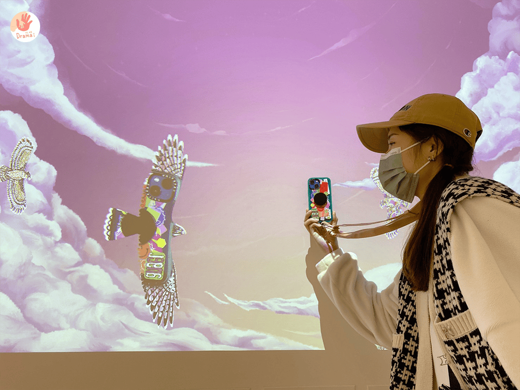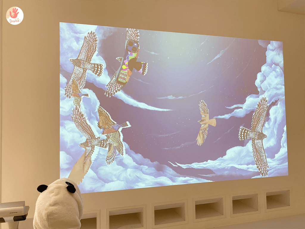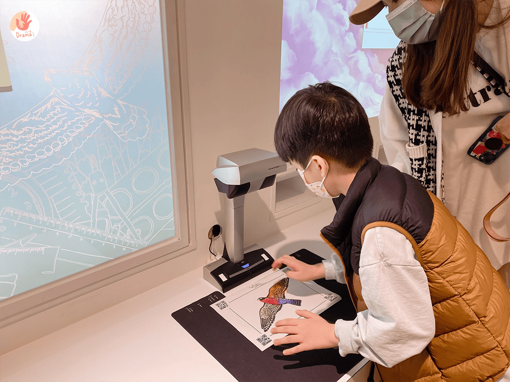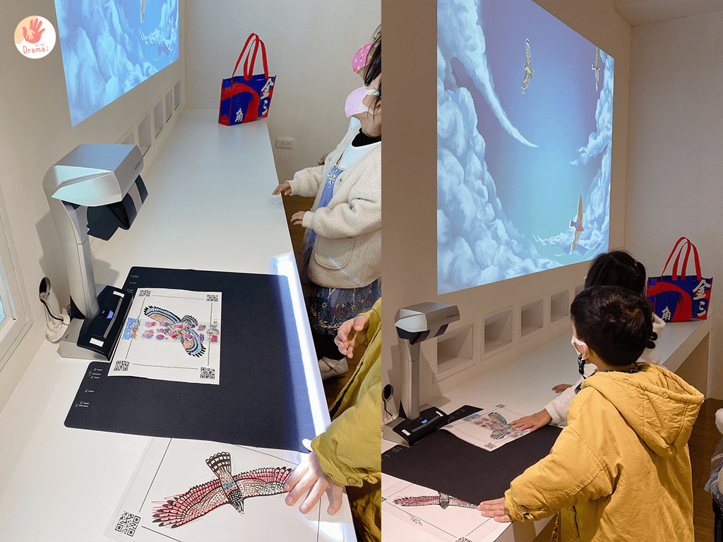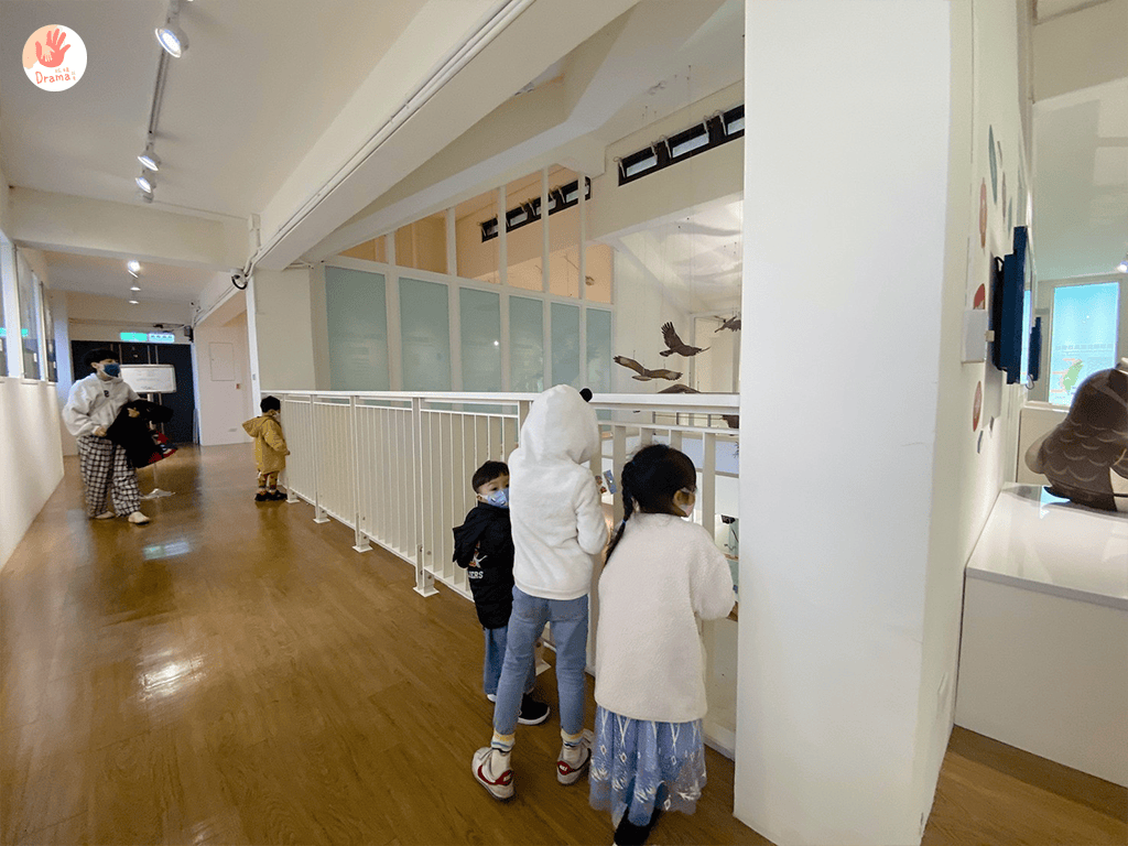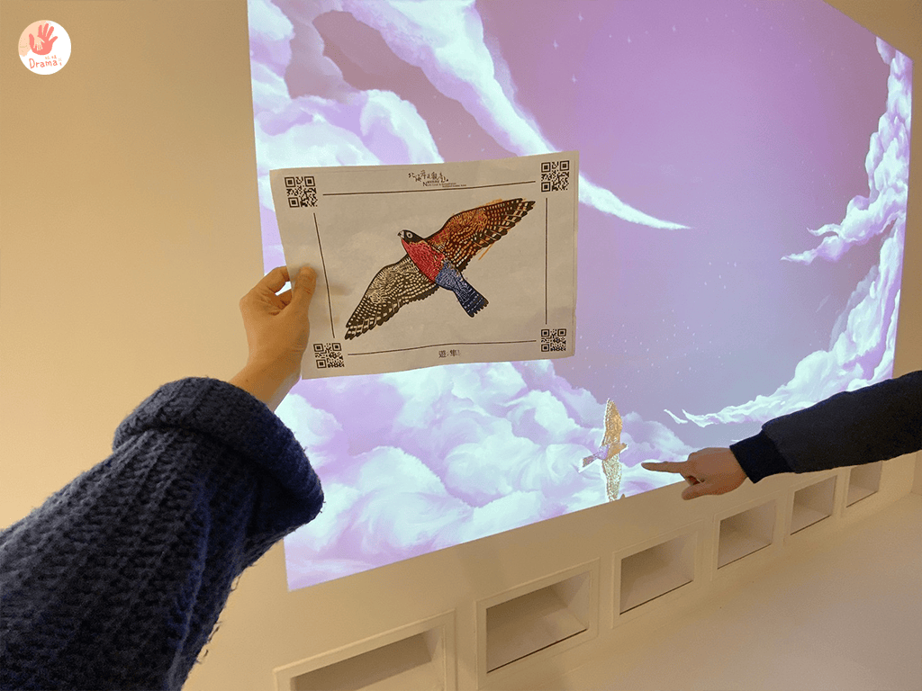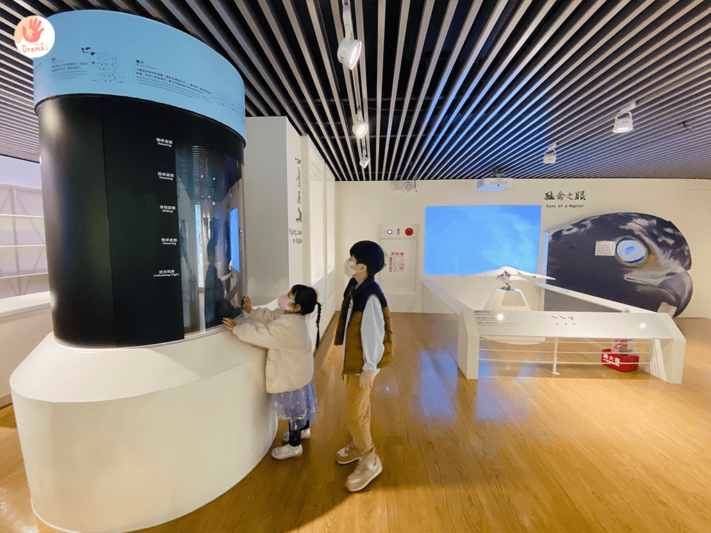 一樓入口的互動就有機器科技老鷹,和快速飛動的老鷹黑色剪影,孩子們盯著看超認真