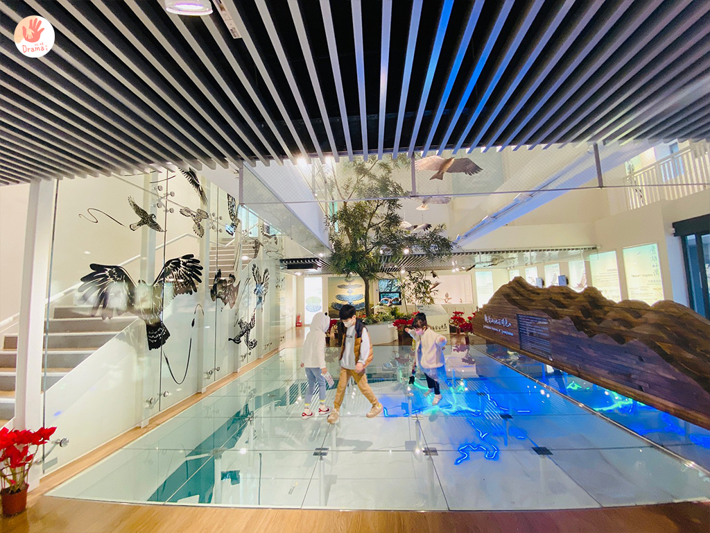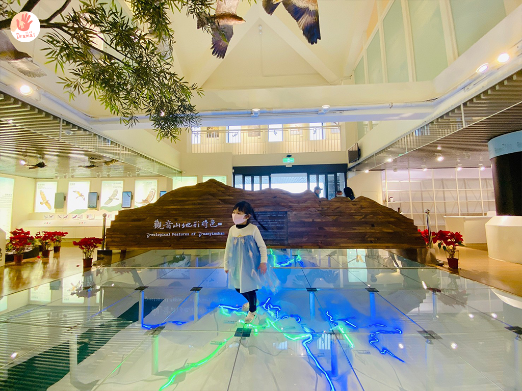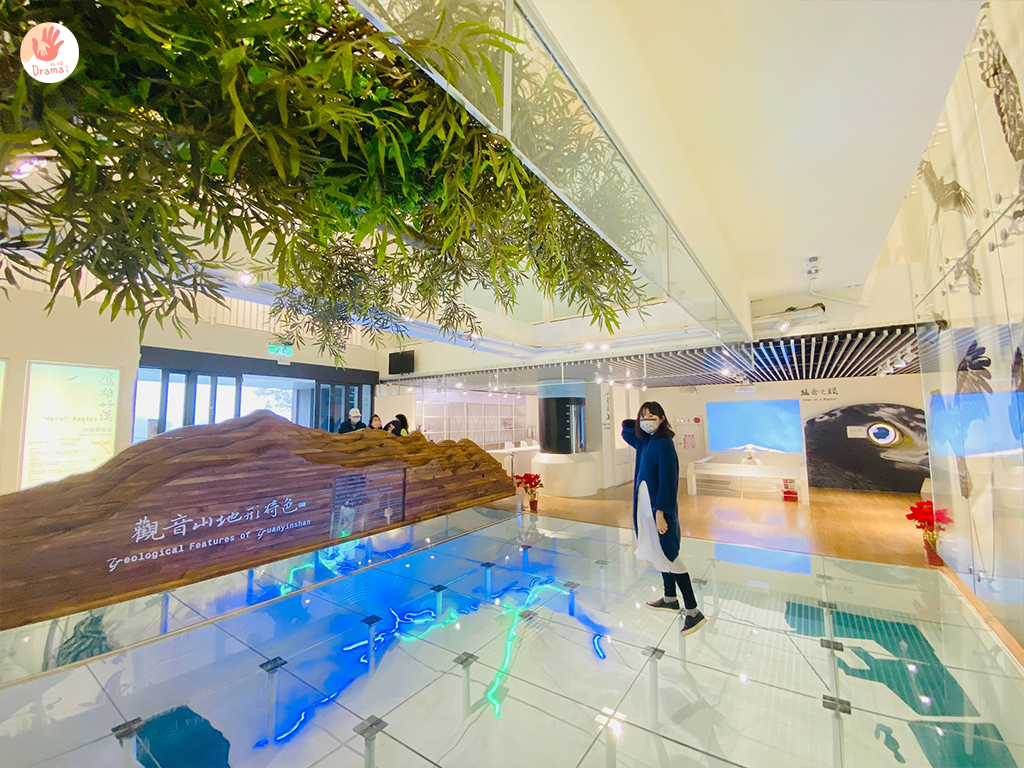 位在觀音山遊客中心樓上的[觀音山猛禽展示館]是北臺灣首座以猛禽教育為主題展館,館內以圖文展板、地形及猛禽生態模型、互動多媒體及VR設施,孩子們玩得超級開心,可以再搭配緊鄰的咖啡廳[豹豹咖啡森林館]就是超棒的一日遊安排。