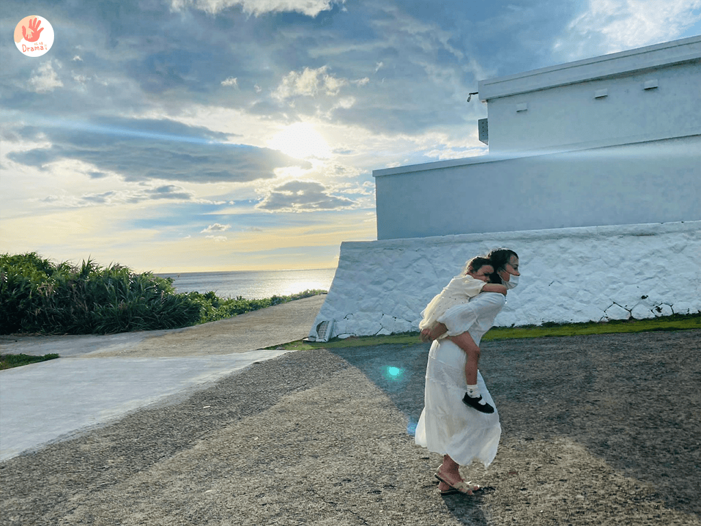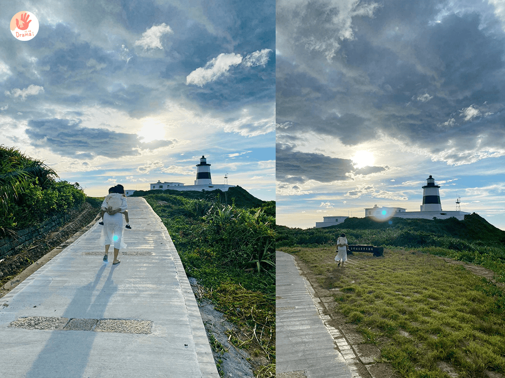 爸爸拍完說就走了吧~~~這次換媽媽說:都走到這了,一定要往前到燈塔那