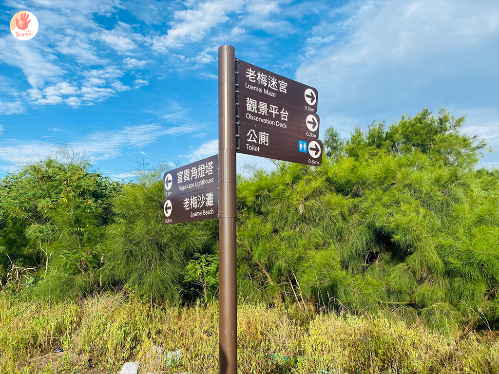 走進木棧步道沒多久,就看到指標,距離老梅迷宮是步行就可抵達,我們是先往裡走