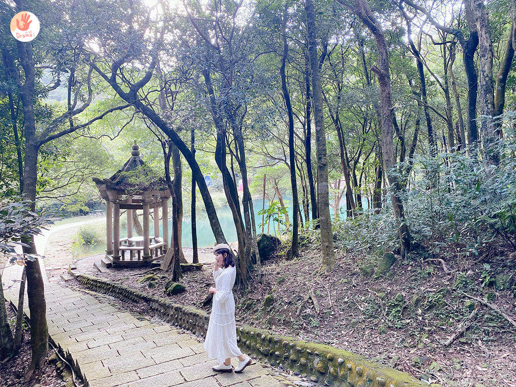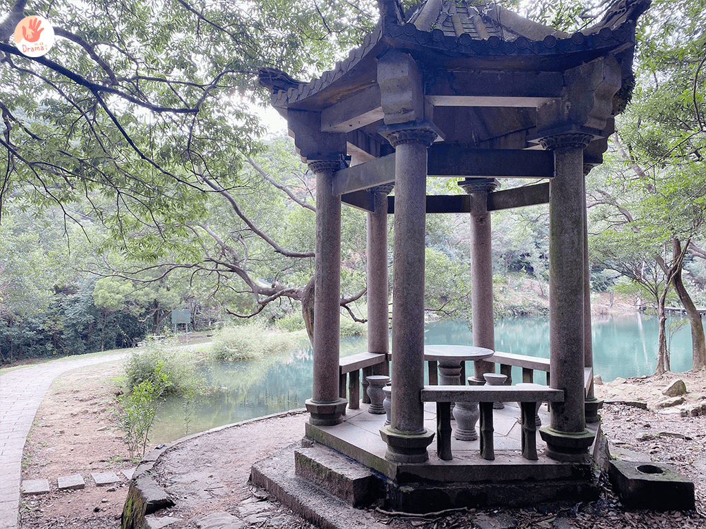 雖然已沒有咖啡廳,但這裡的涼亭桌椅也都保持的很整潔,湖裡的水也很清澈,可以看到好多小魚游泳
