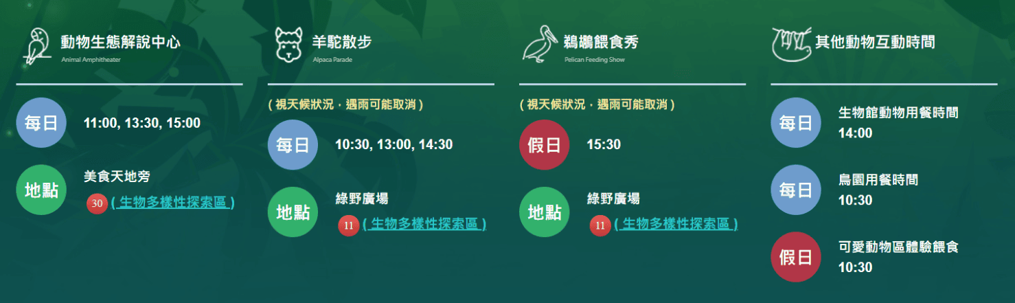 綠世界生態農場|動物互動時間表