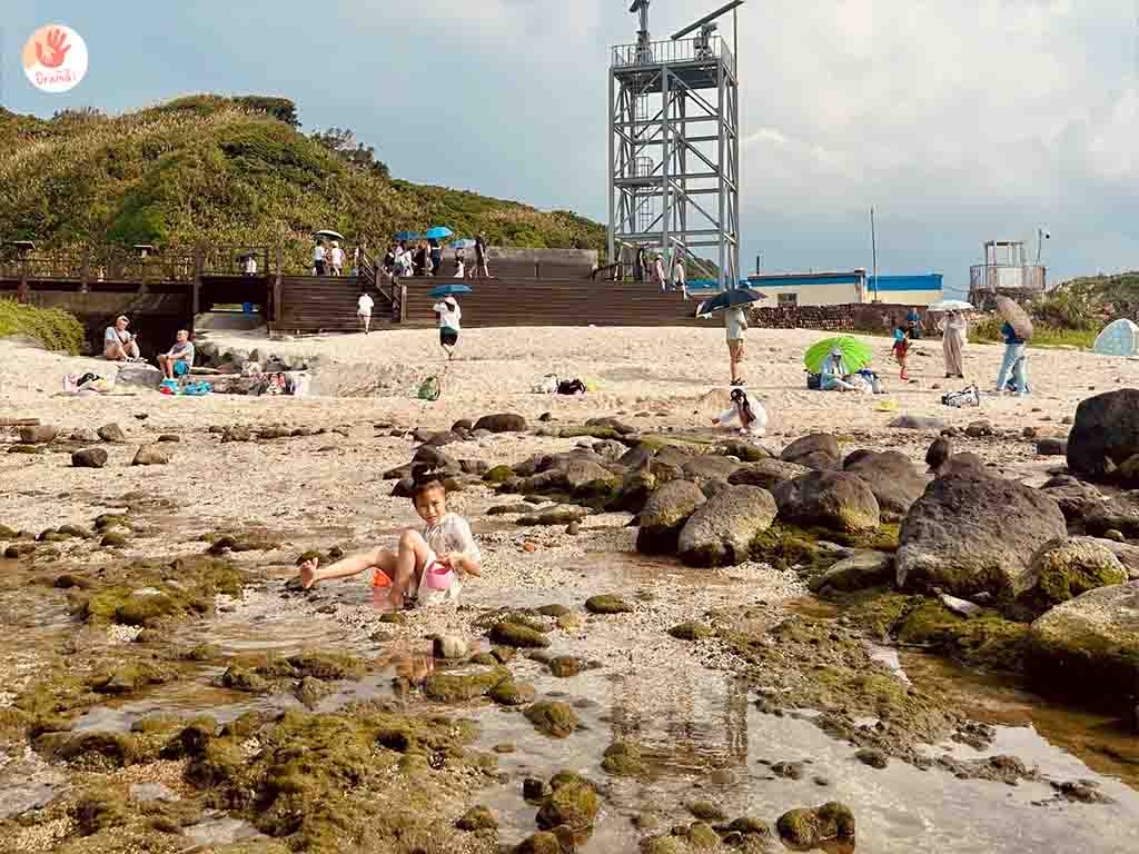 這裡的潮間帶真的太適合小孩來探索玩水泡水裡,尋找螃蟹和小魚,女鵝超愛寄居蟹