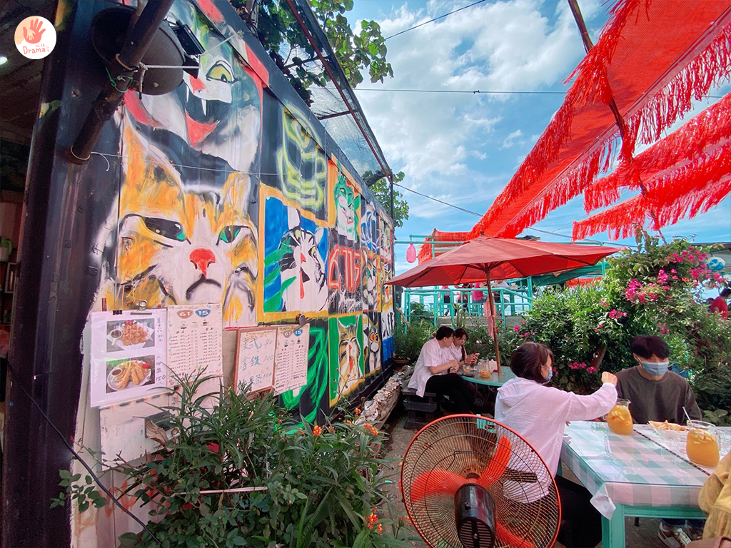 這裡的座位都是戶外有遮棚的位置,我午後來訪天氣很熱,坐在戶外棚下沒有想像中的熱,還蠻放鬆的