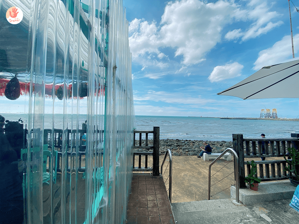 空間沒有很大,靠海的有一個陽傘小圓桌位