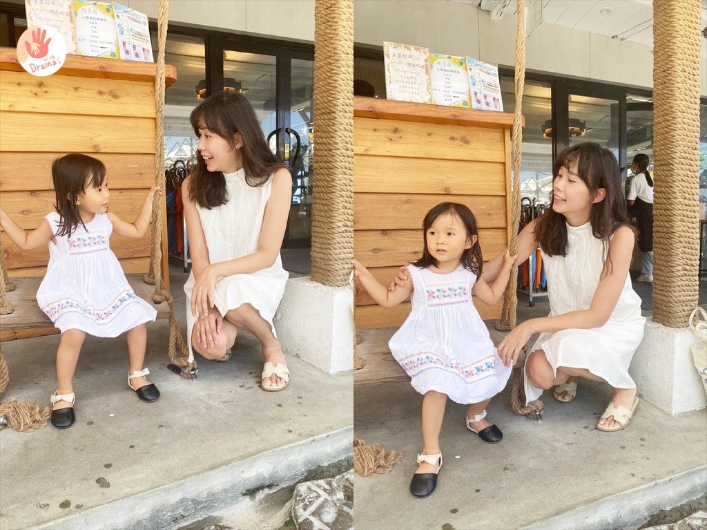 吧台區前的小鞦韆很適合寶包玩耍,但真的太熱,連寶包玩一下之後,都說我要進去吹涼涼