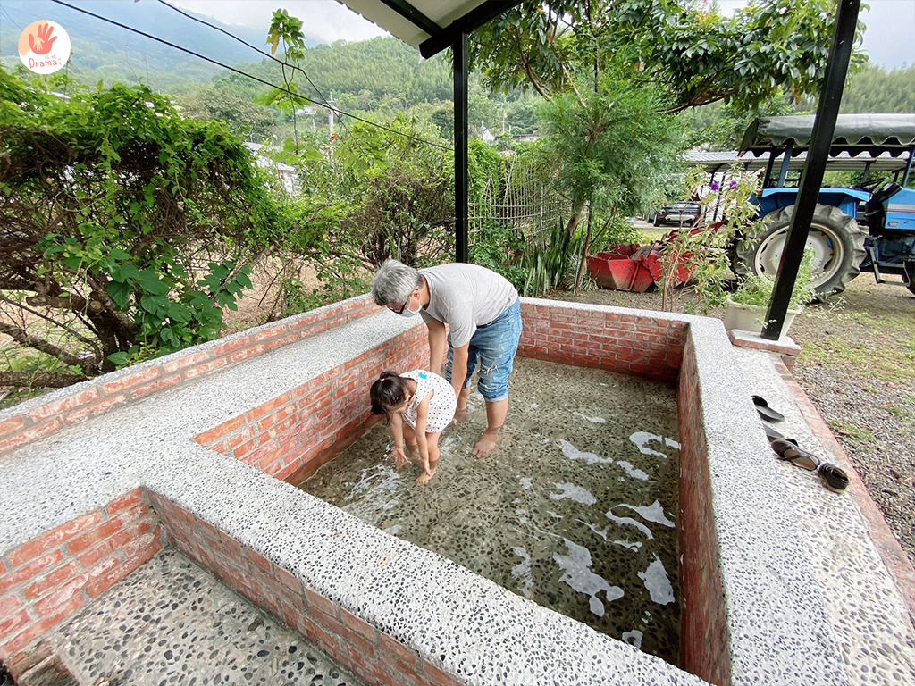 穿珠子眼睛要休息一下的話,就來到戶外的水池泡泡腳,看看綠色環境此時真想來杯咖啡