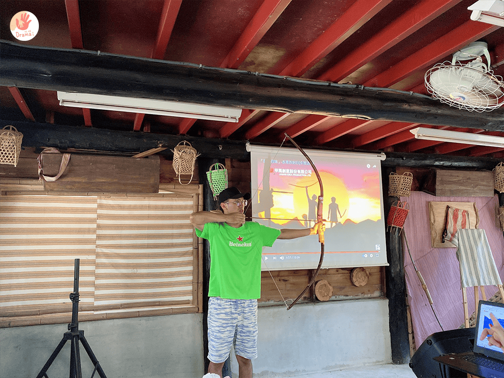 吃飽喝足後,聽著族人透過影片介紹泰雅的傳承故事, 準備來場射箭大賽
