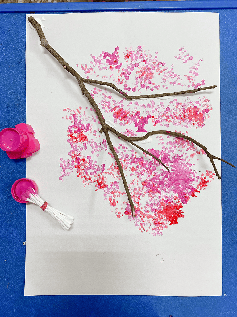 春天來了!櫻花開了!全台各地的櫻花陸續綻放,帶寶貝去賞櫻花,也可以在山裡撿樹枝回家創作櫻花美術,運用棉花棒就可以完成唯美療癒的櫻花樹創作。
