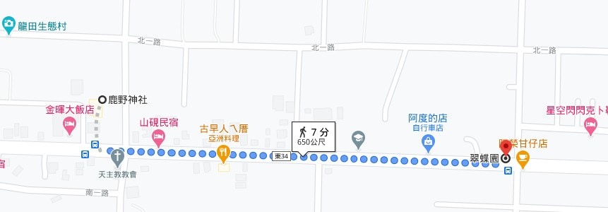 翠蝶園與鹿野神社的距離是走路7分,開車1分鐘,當天我們也遇到很多人用生命在騎腳踏車,這邊最多人推薦的就是阿度的店,這種熱血的行程,實在不適合3歲小孩