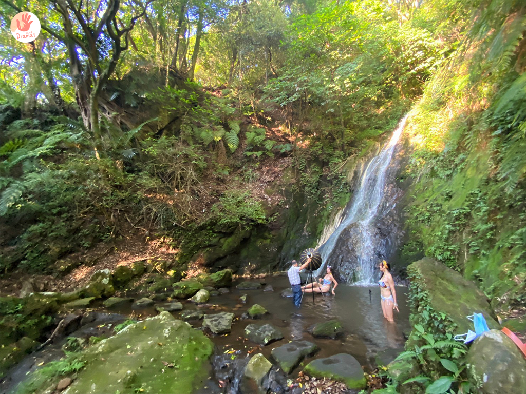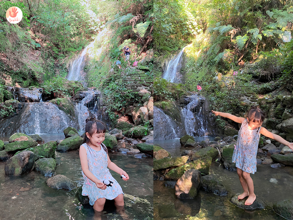 小小的爬了幾個階梯看到傳說中的小隱潭瀑布,這天有人穿了泳衣在拍寫真,所以我們就沒能在瀑布下拍照,還好這裡的瀑布是階梯式瀑布,我們就到下一層一樣可以開心的玩水